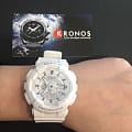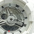 Стильный аксессуар выполнен в спортивном стиле и имеет внушительную конструкцию, серебристо-белая расцветка добавляет привлекательности. Наручные часы обладают ударопрочным корпусомУдаропрочный корпусМеханизм заключён в корпус, выполненный из современных материалов, устойчивых к ударам, механическим повреждениям и падению с высоты: инновационный пластик, карбон, нержавеющая сталь, титан. из пластика, способным выдерживать большие нагрузки. Высокоточный кварцевый механизм не нуждается в подзаводе. Светодиодная подсветкаСветодиодная подсветкаСветодиодная или LED-подсветка обеспечивает появление яркого холодного свечения за счёт LED-элементов - маленьких лампочек. Они потребляют минимальное количество энергии, чаще всего можно встретить 1 светодиод, в нижней части циферблата. дисплея. Полимерный ремешок. Водонепроницаемость при давлении до 10 бар. Функции: 5 будильников, мировое времяМировое время Полезное часовое усложнение, отображающее время в основных городах и известных областях по всему миру, оно связано с часовыми поясами, удобно для путешественников и бизнесменов. , автоматический календарь, таймер, секундомер, хронографХронографФункция позволяет измерять отрезки времени с особой точностью: часы, минуты, секунды. Верным признаком хронографа является наличие на циферблате 3 дополнительных окошек-счётчиков.. Минеральное стекло. Габариты: 43,4 x 46,3 x 15,8 мм.