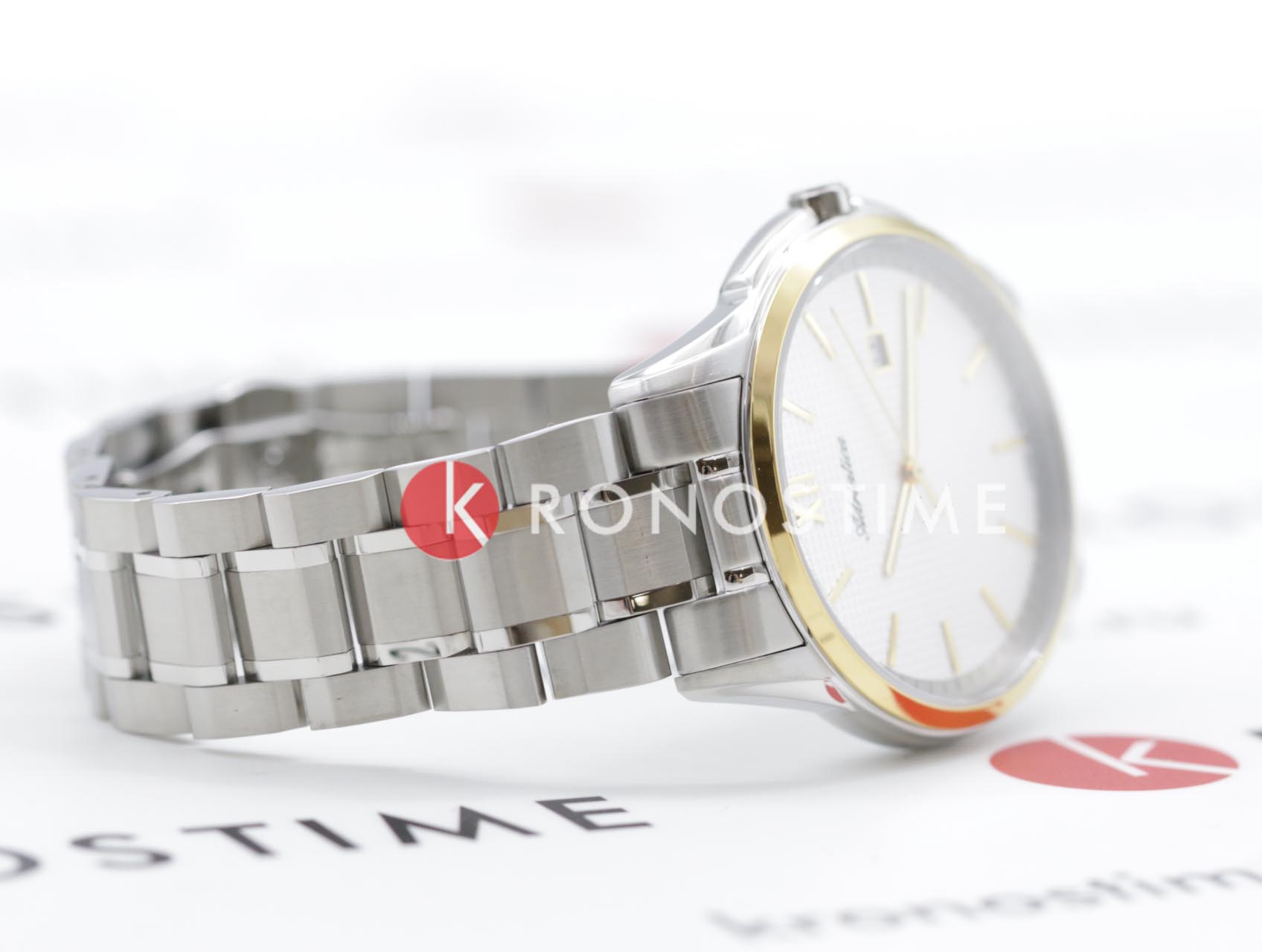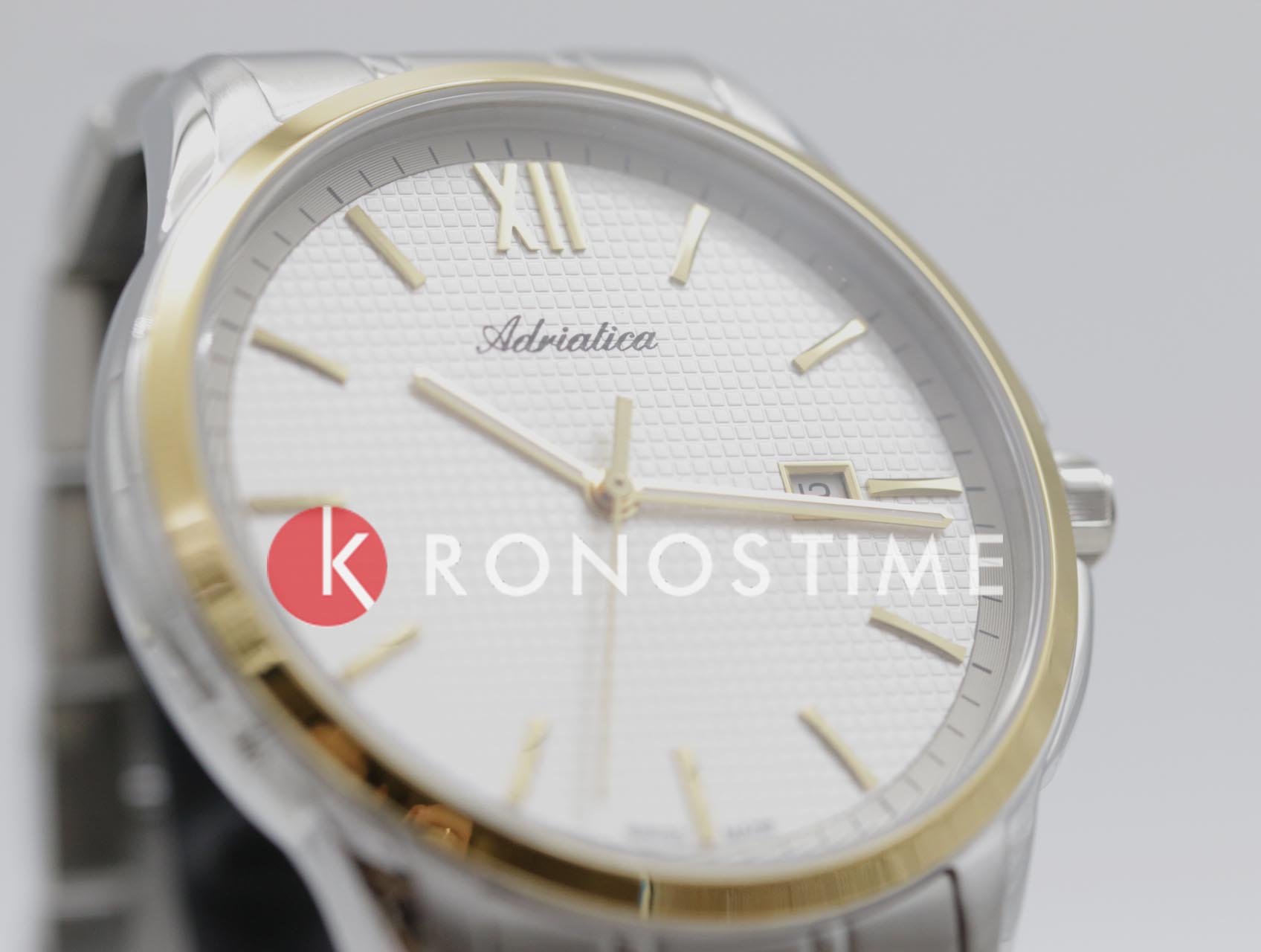 Часы Adriatica A1290.2163Q представляют собой идеальное сочетание элегантности и функциональности, разработанное для современных мужчин. Их стильный циферблат защищен сапфировым стекломСапфировое стеклоПрочный и надёжный материал из кристалла сапфира синтетического происхождения, характеризующийся особой твёрдостью и устойчивостью к царапинам и повреждениям., что придает дополнительную устойчивость к царапинам. Корпус из нержавеющей стали и безельБезельВнешний ободок, закрепляющий стекло. В спортивных часах так называется поворотное кольцо с делениями на циферблате, выполняет роль таймера – замеряет отрезки времени на шкале. Неподвижный безель – элемент декора. Однонаправленно вращающийся безель на дайверских часах позволяет фиксировать моменты погружения и выныривания на поверхность. с PVDPVDУльтратонкое покрытие наносится в технике вакуумного напыления, сочетает в себе нитрид титана особой прочности со слоем золота или оксида хрома. Несёт в себе декоративную или защитную функцию. покрытием, подчеркивает их изысканность и долговечность. Надежный кварцевый механизм с калибром ETA F06 (PreciDrive) гарантирует точность времени, а водозащита WR 50 (5 ATM) обеспечивает защиту от воды в различных условиях. Браслет из нержавеющей стали с частичным PVDPVDУльтратонкое покрытие наносится в технике вакуумного напыления, сочетает в себе нитрид титана особой прочности со слоем золота или оксида хрома. Несёт в себе декоративную или защитную функцию. покрытием и застежкой «бабочка»Застёжка "бабочка"Такой вид застёжки дополняется предохранителями, помогающими избежать случайного раскрытия браслета. Обладают изящным исполнением. гармонично дополняет общий дизайн и обеспечивает комфортное ношение на запястье. Часы оснащены функцией отображения даты в окошке в положении 3 часа, что добавляет практичности в повседневной жизни. Люминесцентное покрытиеЛюминесцентное покрытиеПозволяет считывать показания времени в темноте. Производители наносят на стрелки, часовые индексы, безель или поверхность циферблата светонакопительный состав, дающий холодное свечение. на стрелках и метках обеспечивает отличную видимость в темноте.