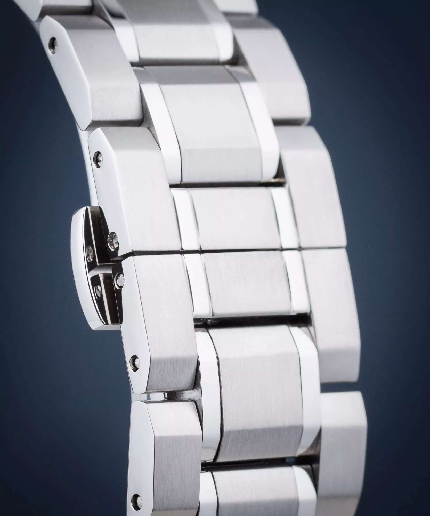Мужские швейцарские часы-хронографХронографФункция позволяет измерять отрезки времени с особой точностью: часы, минуты, секунды. Верным признаком хронографа является наличие на циферблате 3 дополнительных окошек-счётчиков. с секундомеромСекундомерСекундоме́р — прибор, способный измерять интервалы времени с точностью до долей секунды. Adriatica Passion A8283.51R6CH имеют кварцевый механизм с высокой точностью. Сапфировое стеклоСапфировое стеклоПрочный и надёжный материал из кристалла сапфира синтетического происхождения, характеризующийся особой твёрдостью и устойчивостью к царапинам и повреждениям. устойчивое к появлению царапин, обладающее высокой прозрачностью защищает текстурированный черный циферблат с метками в виде штрихов и арабской цифры 12. Месяц и день недели отображаются в отдельных окошках, а дата отображается центральной стрелкой, также часы имеют 3 дополнительных циферблата. Корпус часов изготовлен из нержавеющей стали. На часовую, минутную стрелки нанесено люминесцентное покрытиеЛюминесцентное покрытиеПозволяет считывать показания времени в темноте. Производители наносят на стрелки, часовые индексы, безель или поверхность циферблата светонакопительный состав, дающий холодное свечение., которое светится в темноте, создавая необычное изображение. Стальной браслет с раскладной застёжкойРаскладная застёжкаТакой тип застёжки используется только на браслетах из металла. Она никогда не раскрывается полностью, происходит разделение на 2 и более частей. Раскладывающая застёжка снизит вероятность потери часов к минимуму. обеспечивает комфортное ношение и надежную фиксацию на запястье. Надежный кварцевый механизм с калибром RONDA 5040.F гарантирует точность времени, а водозащита 50 метров, позволит плавать, что позволит защитить корпус от случайных брызг или капель дождя.