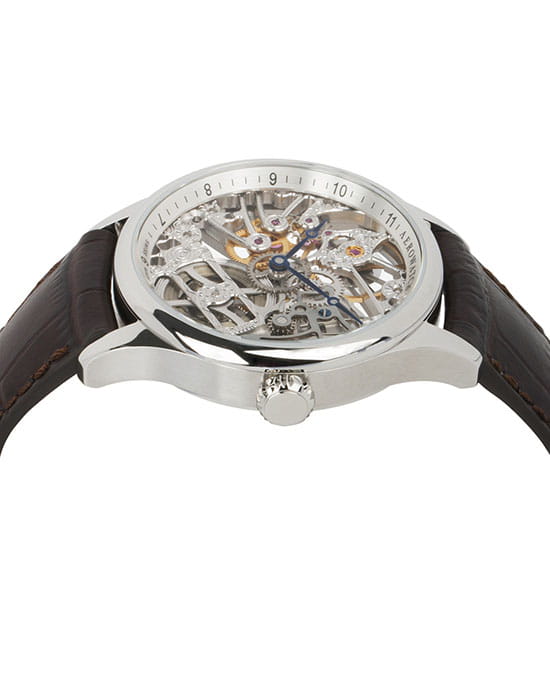 Мужские швейцарские механические часы-скелетоны Aerowatch 50981 AA01, механический механизм (автоматический калибр) с высокой точностью. Сапфировое стекло устойчивое к появлению царапин, обладающее высокой прозрачностью. Класс водозащиты: 50 метров, позволит защитить корпус от случайных брызг или капель дождя. Корпус часов изготовлен из стали, серебристого цвета.