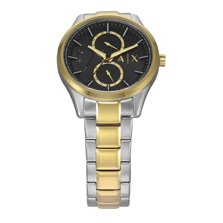 Мужские наручные часы с минеральным стекломМинеральное стеклоМинеральное стекло представляет собой искусственно выращенный минерал кварца. Такое стекло отличается особой устойчивостью к повреждениям и царапинам. Уступает по некоторым качествам сапфировому стеклу. Armani Exchange Dante AX1865, кварцевый механизм с высокой точностью. Класс водозащиты: 50 метров, позволит защитить корпус от случайных брызг или капель дождя. Корпус часов изготовлен из стали с IP-покрытиемIP-покрытиеМетод ионного напыления. Демонстрирует повышенную устойчивость к истиранию, окислению и химическим веществам. Под воздействием высокого давления и температуры около 1500°C молекулы металла надёжно соединяются с частицами корпуса часов.. Стальной браслет на раскладной застёжкеРаскладная застёжкаТакой тип застёжки используется только на браслетах из металла. Она никогда не раскрывается полностью, происходит разделение на 2 и более частей. Раскладывающая застёжка снизит вероятность потери часов к минимуму. с IP-покрытиемIP-покрытиеМетод ионного напыления. Демонстрирует повышенную устойчивость к истиранию, окислению и химическим веществам. Под воздействием высокого давления и температуры около 1500°C молекулы металла надёжно соединяются с частицами корпуса часов.. БезельБезельВнешний ободок, закрепляющий стекло. В спортивных часах так называется поворотное кольцо с делениями на циферблате, выполняет роль таймера – замеряет отрезки времени на шкале. Неподвижный безель – элемент декора. Однонаправленно вращающийся безель на дайверских часах позволяет фиксировать моменты погружения и выныривания на поверхность. с IP-покрытиемIP-покрытиеМетод ионного напыления. Демонстрирует повышенную устойчивость к истиранию, окислению и химическим веществам. Под воздействием высокого давления и температуры около 1500°C молекулы металла надёжно соединяются с частицами корпуса часов..
