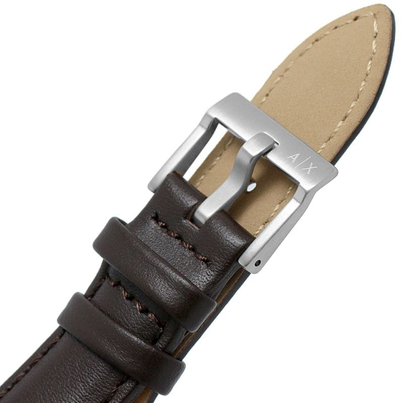 Мужские наручные часы с минеральным стекломМинеральное стеклоМинеральное стекло представляет собой искусственно выращенный минерал кварца. Такое стекло отличается особой устойчивостью к повреждениям и царапинам. Уступает по некоторым качествам сапфировому стеклу. Armani Exchange Dante AX1868, кварцевый механизм с высокой точностью. Класс водозащиты: 50 метров, позволит защитить корпус от случайных брызг или капель дождя. Корпус часов изготовлен из стали. Кожаный ремешок на стандартной застёжке.
