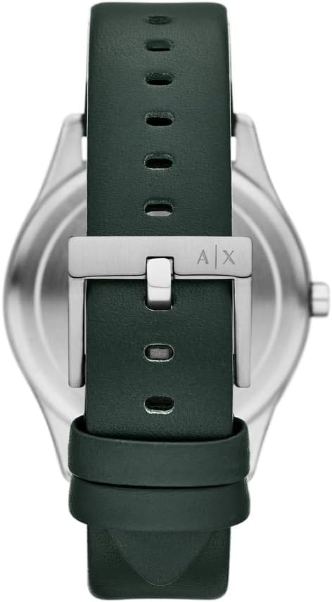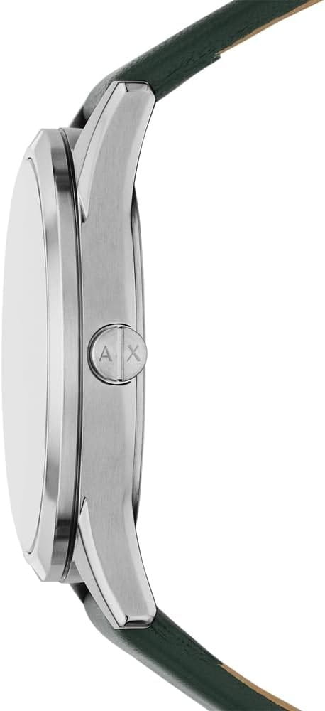 Armani Exchange Dante AX1883 — это стильные часы, которые станут отличным дополнением к вашему образу. Они оснащены надежным кварцевым механизмом и имеют корпус из высококачественной нержавеющей стали. Черный циферблат украшен метками в виде штрихов, придавая часам современный и утонченный вид. Минеральное стеклоМинеральное стеклоМинеральное стекло представляет собой искусственно выращенный минерал кварца. Такое стекло отличается особой устойчивостью к повреждениям и царапинам. Уступает по некоторым качествам сапфировому стеклу. обеспечивает надежную защиту от царапин. функциональность. Функциональность часов на высоте: они показывают время в 12-ти и 24-х часовом формате и оснащены удобными индикаторами даты и дня недели на отдельных циферблатах. Ремешок из кожи темно-зеленого цвета, дополнен стандартной классической застежкой для комфортного ношения. Часы обладают водозащитой 50WR, что делает их подходящими для повседневного использования.
