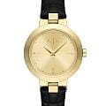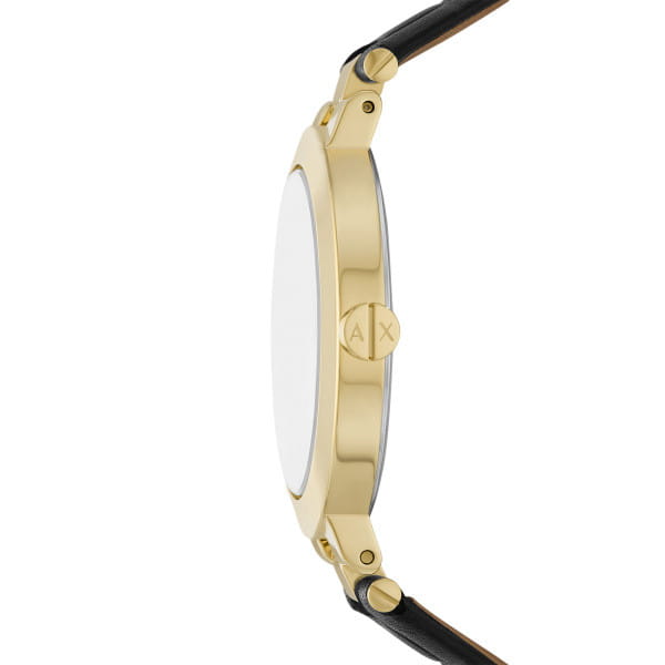 Женские часы Armani Exchange Jackie AX5174 — стильный аксессуар, который подчеркнет ваш современный образ. Эти кварцевые часы сочетают в себе утонченность и практичность, идеально подходя для ежедневного ношения. Корпус из нержавеющей стали с IP-покрытиемIP-покрытиеМетод ионного напыления. Демонстрирует повышенную устойчивость к истиранию, окислению и химическим веществам. Под воздействием высокого давления и температуры около 1500°C молекулы металла надёжно соединяются с частицами корпуса часов., диаметром 36 мм и толщиной 6 мм создают элегантный и стойкий к царапинам вид, а также золотистый циферблат придает часам изысканность и универсальность. Минеральное стеклоМинеральное стеклоМинеральное стекло представляет собой искусственно выращенный минерал кварца. Такое стекло отличается особой устойчивостью к повреждениям и царапинам. Уступает по некоторым качествам сапфировому стеклу. защищает их от царапин и повреждений, сохраняя первозданный вид даже при активном использовании. Кожаный ремешок на стандартной застёжке обеспечивает надежную фиксацию на запястье. Циферблат выполнен по технологии Sunray (солнечные лучи) и украшен кристаллами. Метки в виде штрихов. Водозащита 50WR позволяет защитить часы от случайных брызг воды.