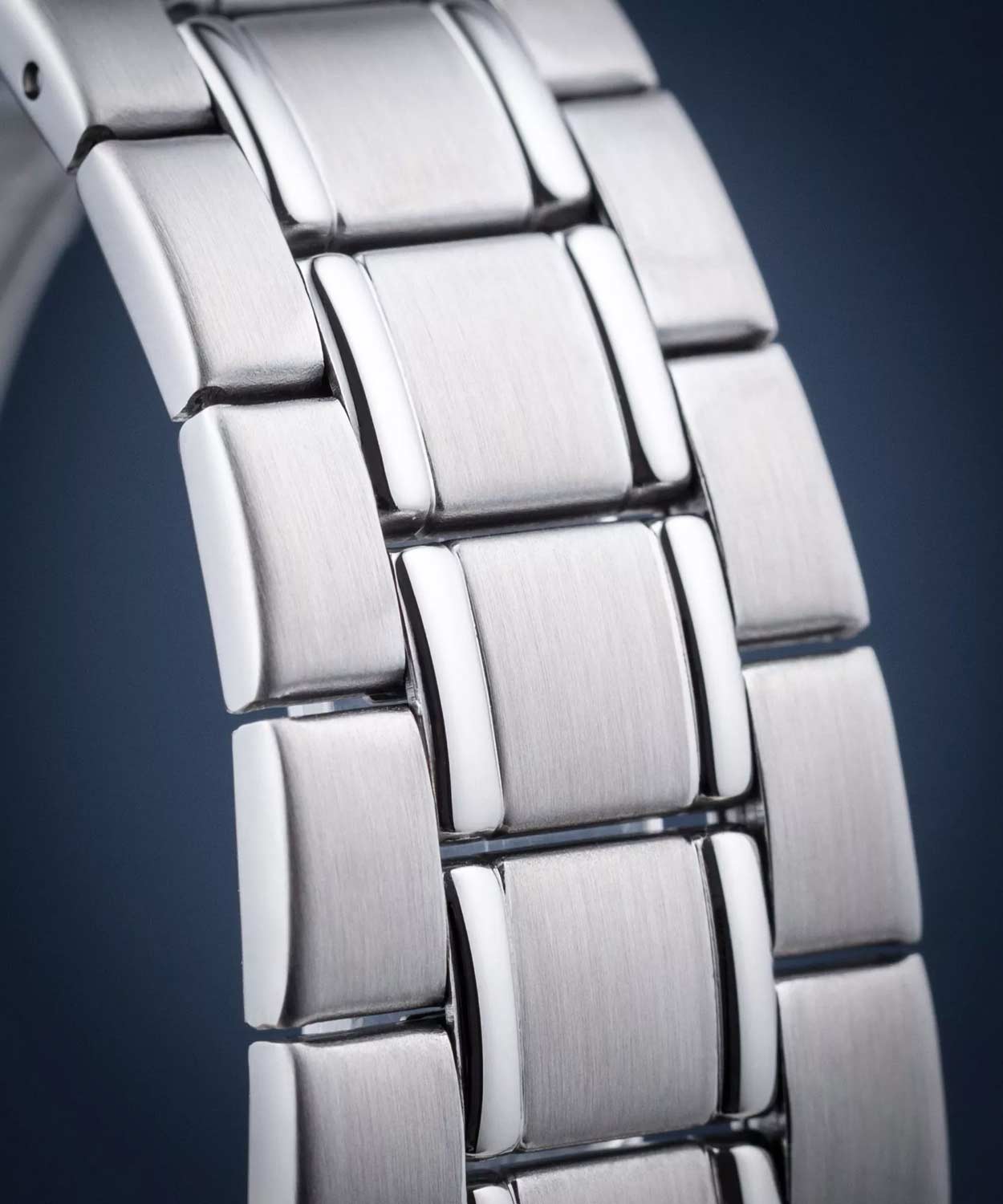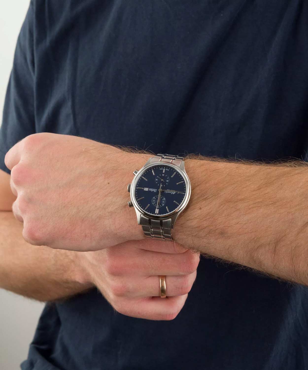 Мужские кварцевые швейцарские часы Atlantic Seabase Quartz Chronograph Edition c хронографомХронографФункция позволяет измерять отрезки времени с особой точностью: часы, минуты, секунды. Верным признаком хронографа является наличие на циферблате 3 дополнительных окошек-счётчиков. 64457.41.51, механизм с высокой точностью. Циферблат часов с сапфировым стекломСапфировое стеклоПрочный и надёжный материал из кристалла сапфира синтетического происхождения, характеризующийся особой твёрдостью и устойчивостью к царапинам и повреждениям., устойчивым к появлению царапин и обладающее высокой прозрачностью. Класс водозащиты: 50 метров, позволит защитить корпус от случайных брызг или капель дождя. Корпус часов изготовлен из нержавеющей стали. Стальной браслет на раскладной застёжкеРаскладная застёжкаТакой тип застёжки используется только на браслетах из металла. Она никогда не раскрывается полностью, происходит разделение на 2 и более частей. Раскладывающая застёжка снизит вероятность потери часов к минимуму.. Окошко даты находится в положении 3 часа.