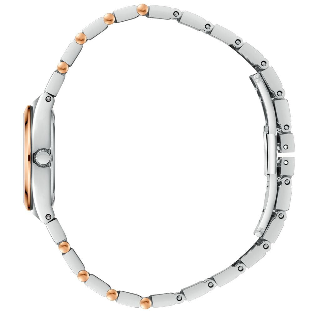 Стальной браслет с IP-покрытиемIP-покрытиеМетод ионного напыления. Демонстрирует повышенную устойчивость к истиранию, окислению и химическим веществам. Под воздействием высокого давления и температуры около 1500°C молекулы металла надёжно соединяются с частицами корпуса часов. на застёжке-бабочке с кнопкамиЗастёжка "бабочка"Такой вид застёжки дополняется предохранителями, помогающими избежать случайного раскрытия браслета. Обладают изящным исполнением. . Часы обладают водозащитой до 30 метров, позволит защитить корпус от случайных брызг или капель дождя. Синтетический бриллиант придает часам неповторимый шарм и изысканность.