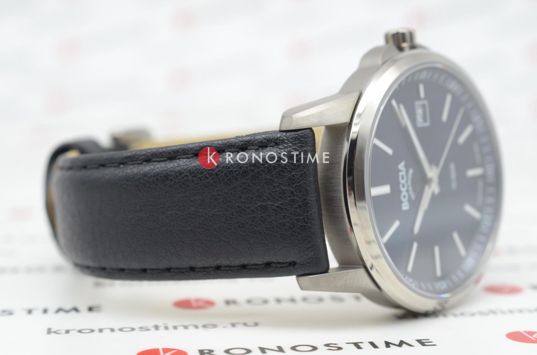 Мужские немецкие титановые часы Boccia Titanium 3633-01, кварцевый механизм с высокой точностью. Минеральное стеклоМинеральное стеклоМинеральное стекло представляет собой искусственно выращенный минерал кварца. Такое стекло отличается особой устойчивостью к повреждениям и царапинам. Уступает по некоторым качествам сапфировому стеклу. устойчивое к появлению царапин, обладающее высокой прозрачностью. Корпус изготовлен из титана. Класс водозащиты: 100 метров, позволит плавать, нырять и заниматься другими водными видами спорта. Кожаный ремешок на стандартной застёжке. Стрелки и метки с люминесцентным покрытиемЛюминесцентное покрытиеПозволяет считывать показания времени в темноте. Производители наносят на стрелки, часовые индексы, безель или поверхность циферблата светонакопительный состав, дающий холодное свечение..