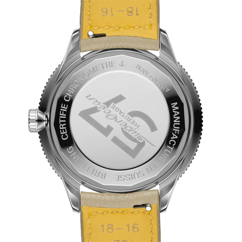 Красочная дань уважения часовой компании Breitling оригинальной модели SuperOcean и воплощение пляжного стиля. В капсульной коллекции Superocean Heritage ’57 Pastel Paradise использованы некоторые элементы дизайна первой модели SuperOcean 1957 года выпуска, такие как вогнутый керамический безель, крупные индексы и часовая стрелка в форме стрелы.