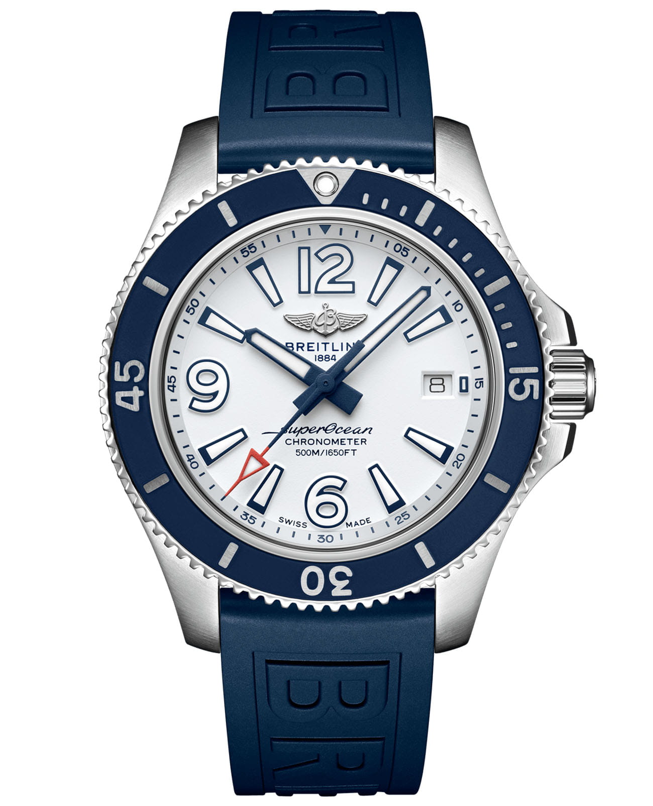Современная, спортивная и яркая модель Superocean Automatic 42 совмещает в себе прекрасные технические характеристики с современным дизайном – она изящно выглядит на любом запястье. Эти часы не боятся ничего: в них можно погружаться под воду, заниматься серфингом или делать заплывы!