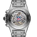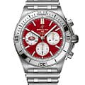 Мужские швейцарские часы-хронограф с секундомером Breitling Chronomat B01 42 NFL San Francisco 49ers Edition AB01342B1K1A1, механический механизм (автоматический калибр) с высокой точностью. Сапфировое стеклоСапфировое стеклоПрочный и надёжный материал из кристалла сапфира синтетического происхождения, характеризующийся особой твёрдостью и устойчивостью к царапинам и повреждениям. устойчивое к появлению царапин, обладающее высокой прозрачностью. Класс водозащиты: 200 метров, позволит плавать, нырять и заниматься другими водными видами спорта. Корпус часов изготовлен из нержавеющей стали. Стальной браслет на застёжке «бабочка» с кнопкамиЗастёжка "бабочка"Такой вид застёжки дополняется предохранителями, помогающими избежать случайного раскрытия браслета. Обладают изящным исполнением. . Стрелки и метки с люминесцентным покрытиемЛюминесцентное покрытиеПозволяет считывать показания времени в темноте. Производители наносят на стрелки, часовые индексы, безель или поверхность циферблата светонакопительный состав, дающий холодное свечение.. Шкала тахиметра на циферблате. Окошко даты находится в положении 6 часов.