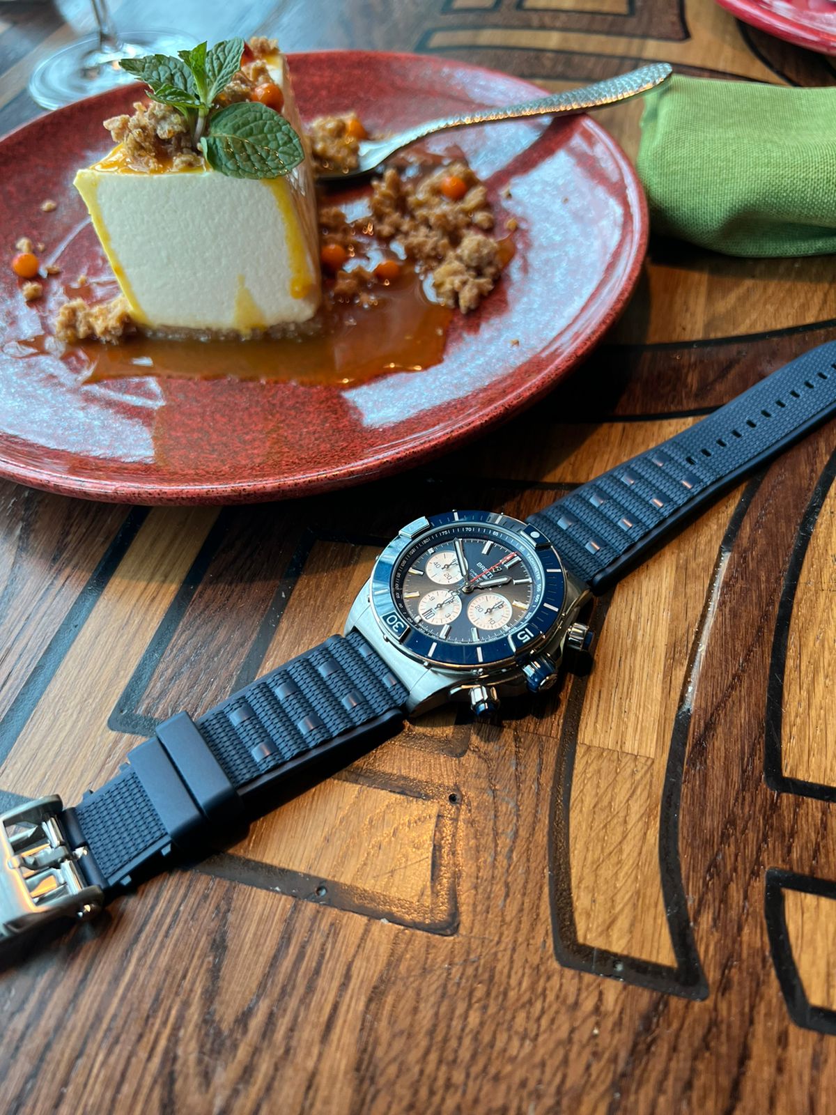 «Реактивные» часы Breitling на все случаи жизни. Часы Super Chronomat созданы по мотивам оригинальной модели Chronomat 80-х годов, которая была разработана компанией Breitling для асов пилотажной эскадрильи. Обладающие наиболее смелым дизайном из всех моделей коллекции Chronomat, часы Super Chronomat отличаются кармической инкрустацией на безеле, кнопках хронографа и заводной головке. Кроме того, их дополняет каучуковый ремешок в стиле Rouleaux. Эти универсальные спортивные часы подчеркнут ваш безупречный вкус.