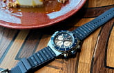 Корпус часов изготовлен из нержавеющей стали. Синий каучуковый ремешок со складной клипсой. Прозрачная задняя крышка корпуса из сапфирового стекла. Класс водозащиты: 200 метров.