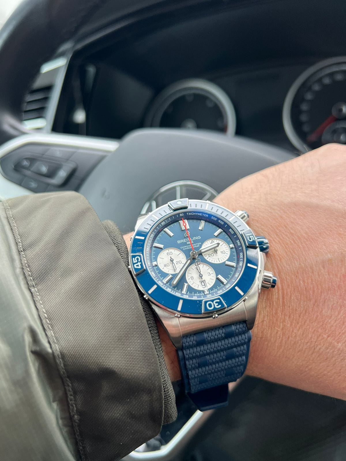 Часы Breitling Super Chronomat B01 44 AB0136161C1S1, мануфактурный калибр Breitling Manufacture Caliber 01, высокое качество которого подтверждено Швейцарским институтом официального тестирования хронометров (COSC). Выпуклое сапфировое стекло устойчивое к появлению царапин, обладающее высокой прозрачностью и антибликовым покрытием с обеих сторон.
