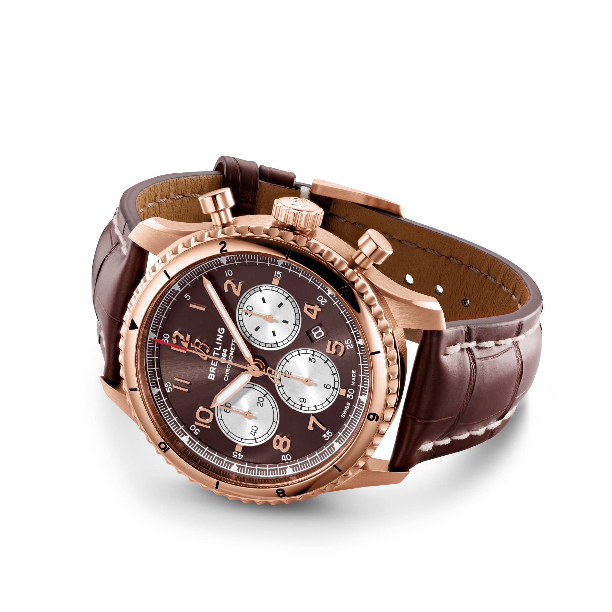 На циферблате имеются 30-минутный и 12-часовой счетчик, а также окошко отображения даты. Флагман данной линейки – Aviator 8 B01 Chronograph 43 – доступен в исполнении из нержавеющей стали с черным или синим циферблатом, либо в корпусе из 18-каратного розового золота с бронзовым циферблатом.
