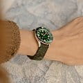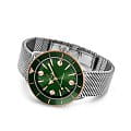 . Сапфировое стеклоСапфировое стеклоПрочный и надёжный материал из кристалла сапфира синтетического происхождения, характеризующийся особой твёрдостью и устойчивостью к царапинам и повреждениям., выпуклое с обеих сторон, внутреннее антибликовое покрытие. Стальной браслет миланского плетения на застёжке-бабочке с кнопкамиЗастёжка "бабочка"Такой вид застёжки дополняется предохранителями, помогающими избежать случайного раскрытия браслета. Обладают изящным исполнением. . Водозащита: 100 метров, позволит плавать, нырять и заниматься другими водными видами спорта. Поворотный керамический безельБезельВнешний ободок, закрепляющий стекло. В спортивных часах так называется поворотное кольцо с делениями на циферблате, выполняет роль таймера – замеряет отрезки времени на шкале. Неподвижный безель – элемент декора. Однонаправленно вращающийся безель на дайверских часах позволяет фиксировать моменты погружения и выныривания на поверхность..