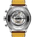 На массивном корпусе диаметром 46 мм напротив метки «3 часа» выделяется крупная заводная головка. Рифление на безеле обеспечивает надежный захват, а отстрочка на ремешках из телячьей кожи напоминает отделку классического летного снаряжения.