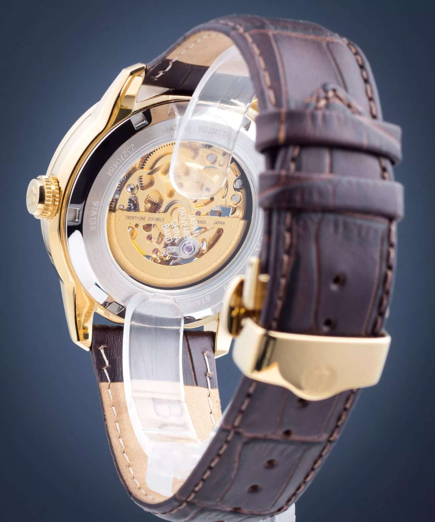 Мужские механические часы-скелетоны с автоподзаводом Bulova Sutton 97A138 – отражающий идеальное сочетание современного дизайна, надёжности и функциональности. Элегантный облик станет превосходным завершением образа, наделив его индивидуальным характером. Корпус из нержавеющей стали с IP-покрытиемIP-покрытиеМетод ионного напыления. Демонстрирует повышенную устойчивость к истиранию, окислению и химическим веществам. Под воздействием высокого давления и температуры около 1500°C молекулы металла надёжно соединяются с частицами корпуса часов. золотистого цвета, диаметром 43 мм идеально сбалансирован и элегантен. Минеральное стеклоМинеральное стеклоМинеральное стекло представляет собой искусственно выращенный минерал кварца. Такое стекло отличается особой устойчивостью к повреждениям и царапинам. Уступает по некоторым качествам сапфировому стеклу. защищает циферблат от царапин и устойчивое к мелким механическим повреждениям. Кожаный ремешок на застёжке-бабочке с кнопкамиЗастёжка "бабочка"Такой вид застёжки дополняется предохранителями, помогающими избежать случайного раскрытия браслета. Обладают изящным исполнением. обеспечивает комфортное ношение. Водозащита 30 метров позволит защитить корпус от случайных брызг или капель дождя. Стрелки с люминесцентным покрытиемЛюминесцентное покрытиеПозволяет считывать показания времени в темноте. Производители наносят на стрелки, часовые индексы, безель или поверхность циферблата светонакопительный состав, дающий холодное свечение. позволяющие легко определять время даже в темноте. Прозрачная задняя крышка. Эта модель – отличный выбор для тех, кто ищет сочетание стиля, качества и функциональности. Часы станут не только полезным аксессуаром, но и выразительным элементом вашего имиджа.