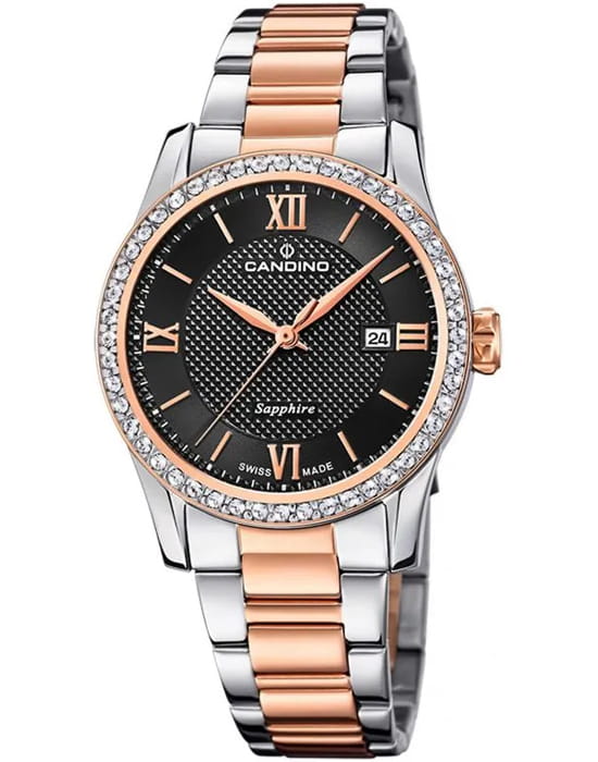Женские швейцарские часы Candino Elegance C4741/5, это классические женские часы из коллекции Lady Elegance. Сапфировое стеклоСапфировое стеклоПрочный и надёжный материал из кристалла сапфира синтетического происхождения, характеризующийся особой твёрдостью и устойчивостью к царапинам и повреждениям. используется в дорогостоящих изделиях, это лучшее стекло для наручных часов, которое не царапается при механическом воздействии, его можно повредить только алмазом. Браслет часов изготовлен из стали с частичным PVD-покрытиемPVDУльтратонкое покрытие наносится в технике вакуумного напыления, сочетает в себе нитрид титана особой прочности со слоем золота или оксида хрома. Несёт в себе декоративную или защитную функцию., механизм — кварц. Кварцевые часы всегда точнее механических. В среднем, погрешность хода составляет 20 секунд в месяц. Кварцевые часы не нужно заводить, только менять батарейку раз в несколько лет. Класс водозащиты: 50 метров, позволит защитить корпус от случайных брызг или капель дождя.