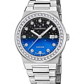 Женские наручные часы Candino Lady Elegance Sparkling Date C4749/3 с надёжным кварцевым механизмом. Корпус и браслет часов изготовлены из нержавеющей стали. Сапфировое стеклоСапфировое стеклоПрочный и надёжный материал из кристалла сапфира синтетического происхождения, характеризующийся особой твёрдостью и устойчивостью к царапинам и повреждениям. повышенной прозрачности, устойчивое к мелким механическим повреждениям. Стальной браслет на раскладной застёжкеРаскладная застёжкаТакой тип застёжки используется только на браслетах из металла. Она никогда не раскрывается полностью, происходит разделение на 2 и более частей. Раскладывающая застёжка снизит вероятность потери часов к минимуму.. Стрелки и метки с люминесцентным покрытиемЛюминесцентное покрытиеПозволяет считывать показания времени в темноте. Производители наносят на стрелки, часовые индексы, безель или поверхность циферблата светонакопительный состав, дающий холодное свечение.. Двухцветный циферблат с россыпью звёзд и безельБезельВнешний ободок, закрепляющий стекло. В спортивных часах так называется поворотное кольцо с делениями на циферблате, выполняет роль таймера – замеряет отрезки времени на шкале. Неподвижный безель – элемент декора. Однонаправленно вращающийся безель на дайверских часах позволяет фиксировать моменты погружения и выныривания на поверхность. инкрустированы цирконами. Класс водозащиты: 50 метров, позволит защитить корпус от случайных брызг или капель дождя. Окошко даты находится в положении 3 часа.