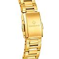 Женские наручные часы Candino C4755/4 из коллекции Lady Elegance сочетают в себе классический дизайн и надежность швейцарского мастерства. Модель обладает круглым корпусом диаметром 33,5 мм, изготовленным из нержавеющей стали с PVD-покрытиемPVDУльтратонкое покрытие наносится в технике вакуумного напыления, сочетает в себе нитрид титана особой прочности со слоем золота или оксида хрома. Несёт в себе декоративную или защитную функцию.. Браслет также выполнен из нержавеющей стали, что обеспечивает долговечность и комфорт при ношении . Синий циферблат украшен римскими цифрами и индексами, а также оснащен люминесцентными стрелками и меткамиЛюминесцентное покрытиеПозволяет считывать показания времени в темноте. Производители наносят на стрелки, часовые индексы, безель или поверхность циферблата светонакопительный состав, дающий холодное свечение., что обеспечивает удобство чтения времени в условиях недостаточной освещенности . Для защиты используется сапфировое стеклоСапфировое стеклоПрочный и надёжный материал из кристалла сапфира синтетического происхождения, характеризующийся особой твёрдостью и устойчивостью к царапинам и повреждениям., известное своей устойчивостью к царапинам и высокой прочностью . Часы работают на кварцевом механизме, гарантирующем точность хода . Водонепроницаемость модели составляет 50 метров (5 атмосфер), что позволяет использовать их во время контакта с водой, например, при мытье рук или дожде, но не рекомендуется для плавания . Элегантный дизайн и функциональность делают эти часы идеальным выбором для повседневного использования и особых случаев.