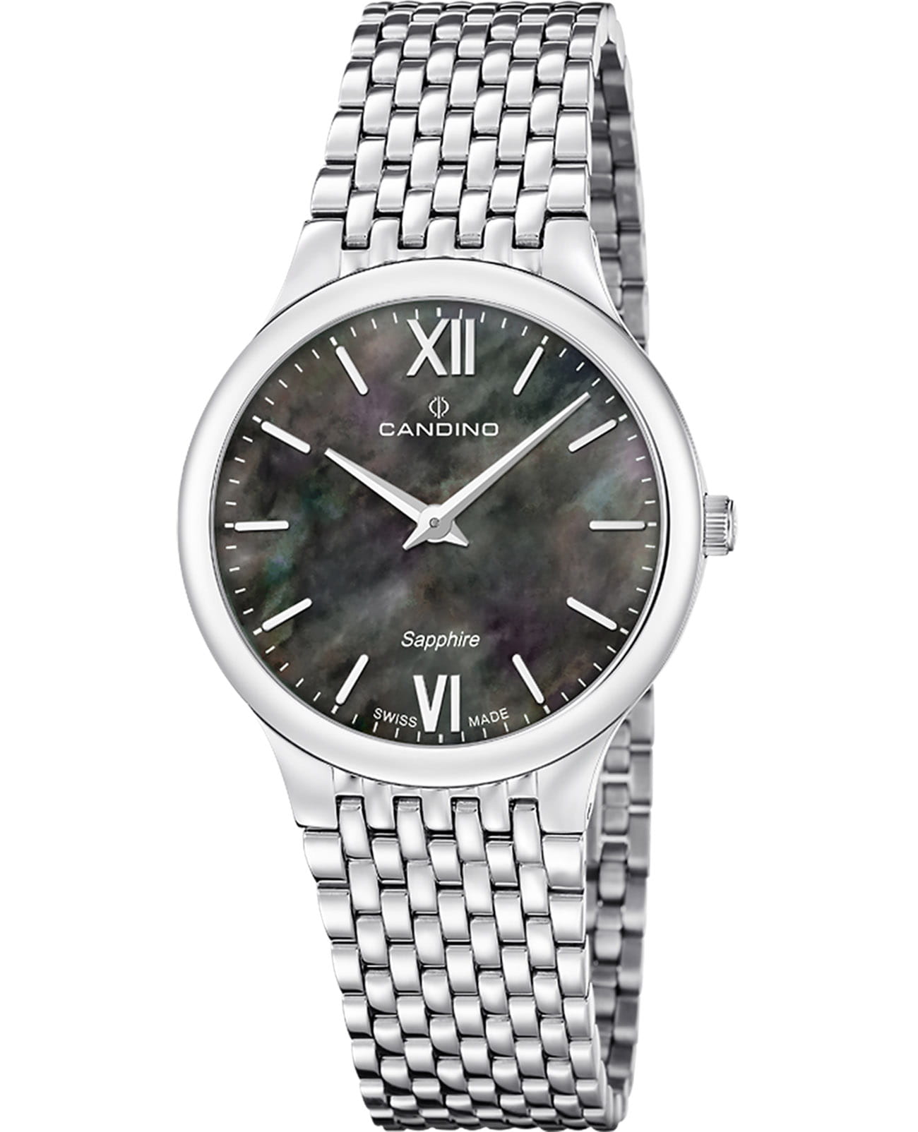 Женские кварцевые часы Candino из коллекции Series 1947 — это утончённый аксессуар, сочетающий минимализм и швейцарское качество. Корпус диаметром 33,5 мм и толщиной всего 6 мм выполнен из нержавеющей стали 316L, что делает часы особенно лёгкими и комфортными в ношении. Циферблат чёрного цвета оформлен двумя стрелками без индикации даты, что придаёт дизайну чистоту и элегантность. Циферблат защищён сапфировым стекломСапфировое стеклоПрочный и надёжный материал из кристалла сапфира синтетического происхождения, характеризующийся особой твёрдостью и устойчивостью к царапинам и повреждениям., устойчивым к царапинам. Механизм — кварцевый произведённый в Швейцарии. Часы оснащены стальным браслетом на застёжке «бабочка» с кнопкамиЗастёжка "бабочка"Такой вид застёжки дополняется предохранителями, помогающими избежать случайного раскрытия браслета. Обладают изящным исполнением. . Водонепроницаемость 50 м позволяет использовать часы в повседневных условиях. Гарантия — 2 года. Идеальный выбор для тех, кто ценит лаконичный стиль, точность и надёжность.