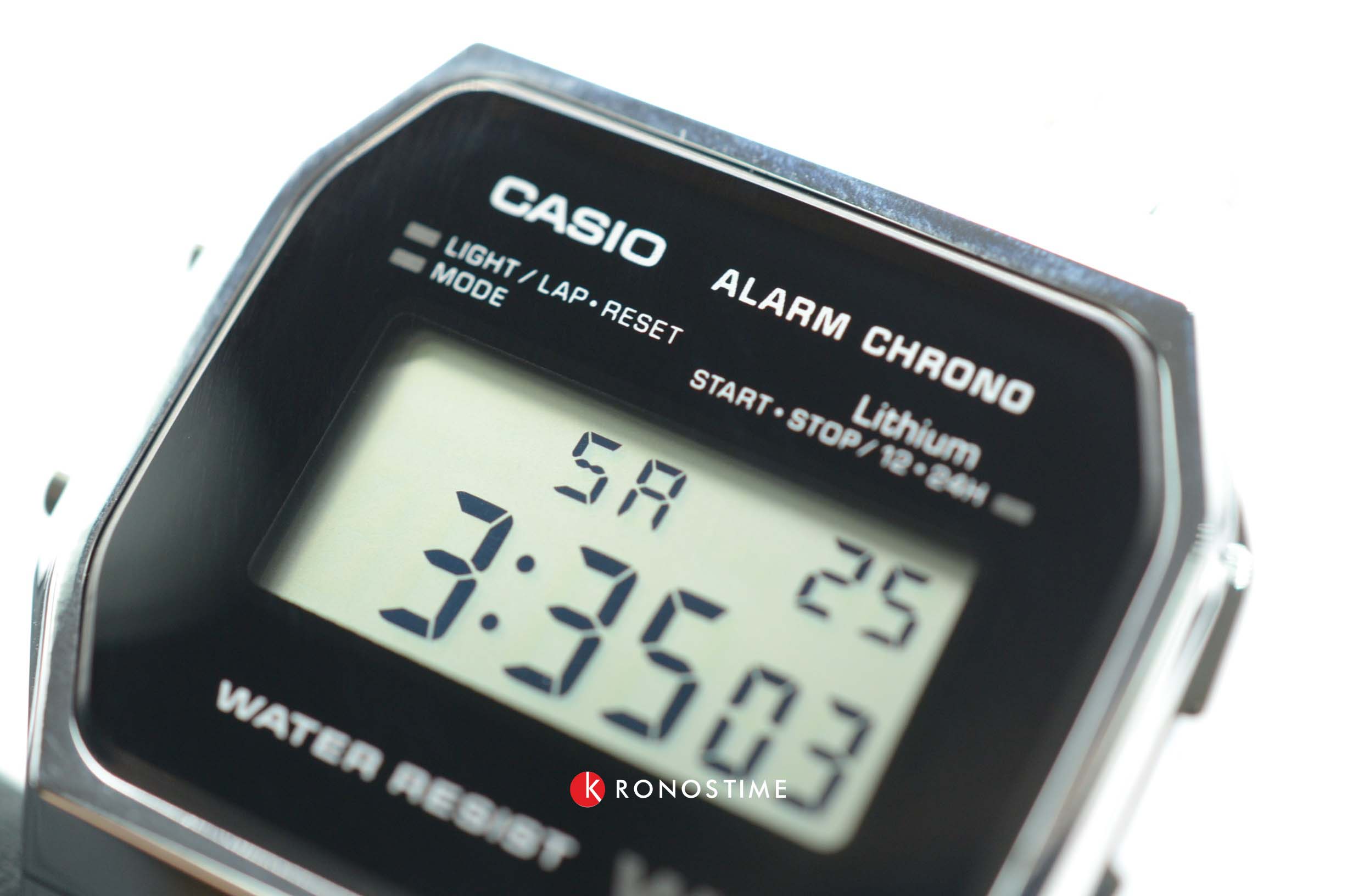 Электронные наручные часы в серебристо-чёрной гамме станут прекрасным дополнением к деловому, повседневному, спортивному образу. Ударопрочный корпусУдаропрочный корпусМеханизм заключён в корпус, выполненный из современных материалов, устойчивых к ударам, механическим повреждениям и падению с высоты: инновационный пластик, карбон, нержавеющая сталь, титан. 8-угольной формы навевает воспоминания о первых моделях Casio. Стильно смотрится браслет из высококачественной нержавеющей стали 316L. Стекло из пластика отличается прочностью и легко полируется в случае появления царапины. Срок службы батарейки составляет 7 лет. Светодиодная подсветкаСветодиодная подсветкаСветодиодная или LED-подсветка обеспечивает появление яркого холодного свечения за счёт LED-элементов - маленьких лампочек. Они потребляют минимальное количество энергии, чаще всего можно встретить 1 светодиод, в нижней части циферблата.. Будильник, секундомер, автоматический календарь до 2099 года. Габариты: 33,2 x 36,8 x 8,2 мм.