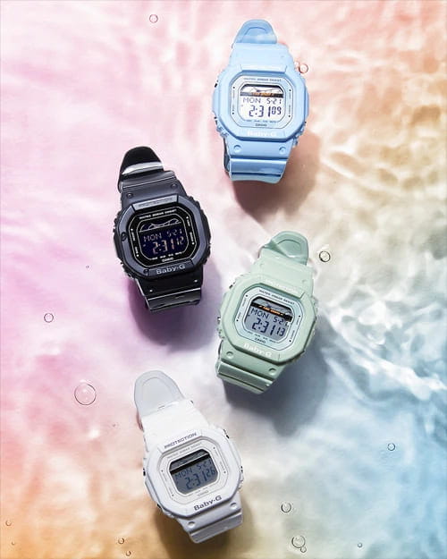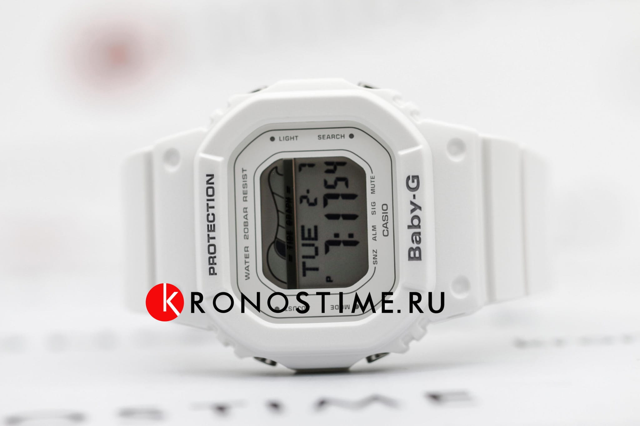 Женские японские часы Casio Baby-G BLX-560-7E из коллекции Baby-G представляют собой аксессуар для любительниц сёрфинга и тёплого моря. Лаконичное белое исполнение сразу влюбляет в себя, характерным элементом стал узнаваемый 8-угольный корпус, отдающий должное первым моделям Casio. Модель серии G-Lide оснащена полезным функционалом, позволяющим вам выбрать оптимальное время для сёрфинга, этому способствуют отображение фаз луны и график приливов и отливов. Противоударный корпусУдаропрочный корпусМеханизм заключён в корпус, выполненный из современных материалов, устойчивых к ударам, механическим повреждениям и падению с высоты: инновационный пластик, карбон, нержавеющая сталь, титан. и мягкий ремешок выполнены из пластика, что позволяет не бояться случайных ударов и падения часов. Японский кварцевый калибр с абсолютной точностью хода. Батарейка рассчитана на 3 года службы. Водостойкость до 20 бар. Электролюминесцентная подсветкаЭлектролюминесцентная подсветкаЭлектролюминесцентная панель устанавливается под ЖК-экраном часов, при нажатии кнопки электричество преобразуется в свет за счёт подачи напряжения на атомы фосфора, такой тип подсветки позволяет освещать весь циферблат. циферблата. СекундомерСекундомерСекундоме́р — прибор, способный измерять интервалы времени с точностью до долей секунды., будильникБудильникБуди́льник — часы, в заданный момент времени подающие звуковой, световой и/или в редких случаях другой сигнал., вечный календарьВечный календарьКлассическое часовое усложнение, представляющее собой календарь, рассчитанный на несколько лет вперёд (стандартно – до 2099 года). Определяет текущую дату, день недели, месяц., таймер, мировое времяМировое время Полезное часовое усложнение, отображающее время в основных городах и известных областях по всему миру, оно связано с часовыми поясами, удобно для путешественников и бизнесменов. - 48 городов.