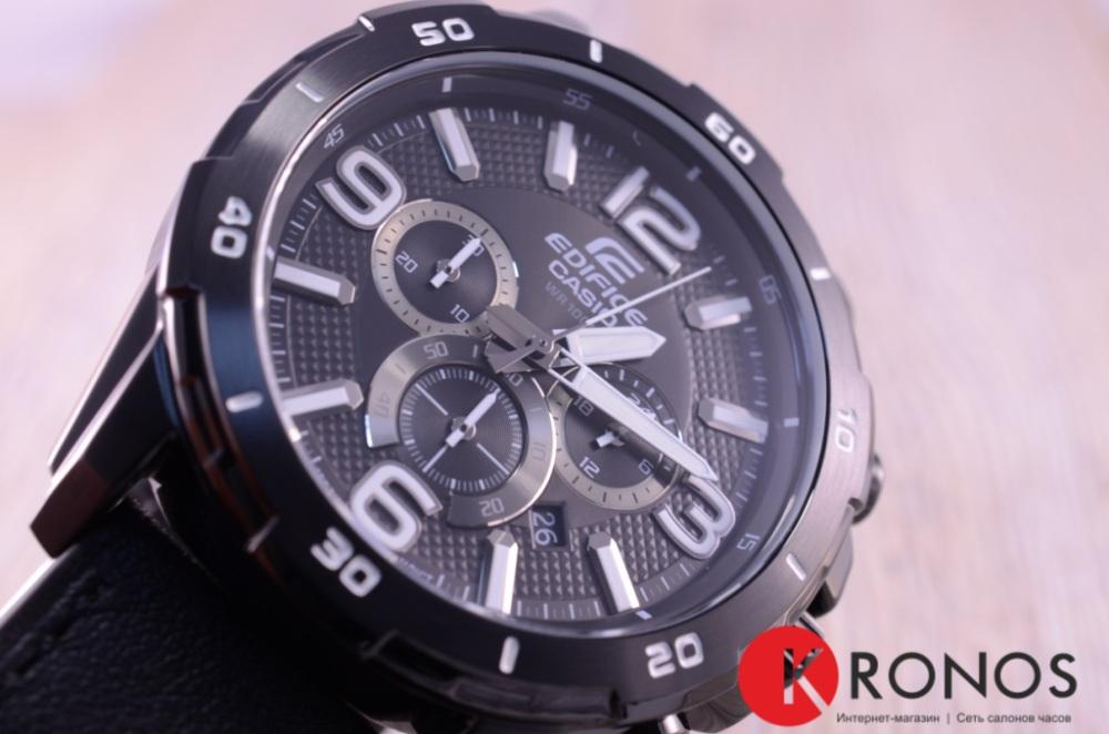 Мужские классические наручные часы Casio Edifice надежные и практичные. Кварцевый японский механизм Miyota. Точность хода не хуже -10 +15 сек./в месяц. Часы оснащены функцией хронографа. Циферблат черног цвета с контрастными индексами.