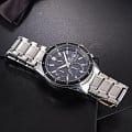 Массивный хронографХронографФункция позволяет измерять отрезки времени с особой точностью: часы, минуты, секунды. Верным признаком хронографа является наличие на циферблате 3 дополнительных окошек-счётчиков. стильно смотрится на запястье, расположение счётчиков на циферблате напоминает нам о приборной панели автомобиля. Модель оснащена технологией . Надёжный корпус из нержавеющей стали 316L дополнен завинчивающейся задней крышкой. Водостойкость 100 метров. Люминесцентная подсветкаЛюминесцентное покрытиеПозволяет считывать показания времени в темноте. Производители наносят на стрелки, часовые индексы, безель или поверхность циферблата светонакопительный состав, дающий холодное свечение.. Секундомер, отображение даты. Габариты: 52 x 46,1 x 11,8 мм.