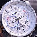 Стильные японские наручные кварцевые мужские часы. Круглый корпус и браслет часов выполнены из стали с антикоррозийными свойствами. Белый карбоновый циферблат с контрастными элементами дизайна. Водонепроницаемость 10 ATM. Минеральное стекло, устойчивое к появлению царапин. Часы оснащены функцией хронографа.