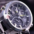 Общее исполнение аксессуара выдержано в автомобильной стилистике, тёмный циферблат отличается оригинальным расположением счётчиков. Наручные часы оснащены технологией BluetoothBluetoothСовременная технология, позволяющая синхронизировать часы с телефоном и переносить данные. Часы с Bluetooth расширяют возможности вашего смартфона и делают его использование ещё более удобным. с низким потреблением энергии, позволяющей часам считывать информацию с интернет-сервера точного времени и обеспечивать абсолютную точность времени. Питание происходит за счёт солнечной батареи - . Водонепроницаемость 100 метров. Минеральное стекло. Люминесцентная подсветкаЛюминесцентное покрытиеПозволяет считывать показания времени в темноте. Производители наносят на стрелки, часовые индексы, безель или поверхность циферблата светонакопительный состав, дающий холодное свечение.. Надёжный стальной браслет. Наличие авиарежима. Функции: уведомление о полученных сообщениях по электронной почте, поиск телефона, отображение числа и дня недели, секундомер, будильник, расчёт средней скорости пройденного маршрута. Габариты: 52 x 48,1 x 14,2 мм.