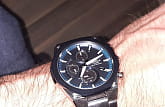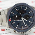 Функциональность модели включает хронографХронографФункция позволяет измерять отрезки времени с особой точностью: часы, минуты, секунды. Верным признаком хронографа является наличие на циферблате 3 дополнительных окошек-счётчиков. с точностью до 1 секунды и максимальным временем измерения 59 минут 59 секунд, а также индикацию датыВечный календарьКлассическое часовое усложнение, представляющее собой календарь, рассчитанный на несколько лет вперёд (стандартно – до 2099 года). Определяет текущую дату, день недели, месяц..