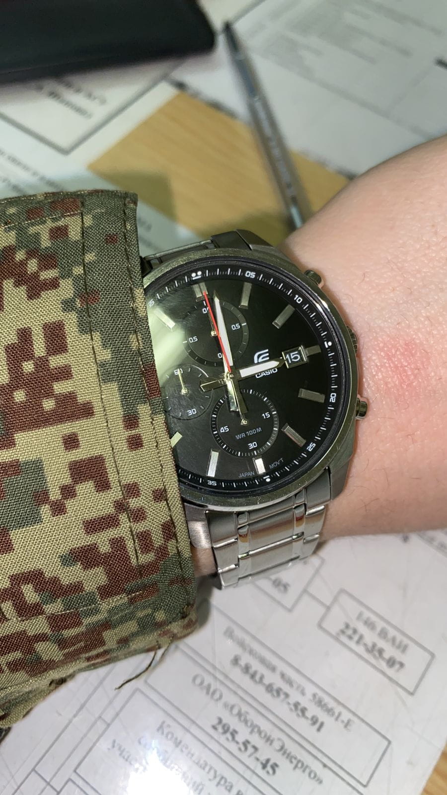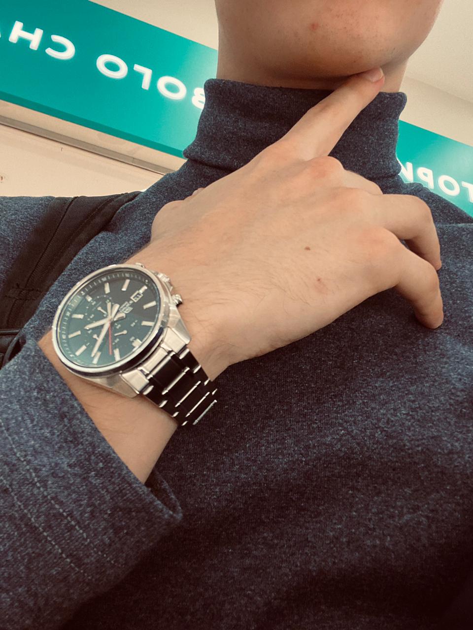Модель Casio Edifice EFV-610D-1AVUDF сочетает спортивный стиль и функциональность, предлагая удобство в повседневном использовании. Корпус диаметром 43,8 мм выполнен из нержавеющей стали, а тонкий безельБезельВнешний ободок, закрепляющий стекло. В спортивных часах так называется поворотное кольцо с делениями на циферблате, выполняет роль таймера – замеряет отрезки времени на шкале. Неподвижный безель – элемент декора. Однонаправленно вращающийся безель на дайверских часах позволяет фиксировать моменты погружения и выныривания на поверхность. и широкий циферблат с лаконичным дизайном придают часам элегантный и современный вид.