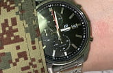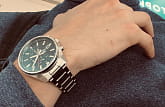 Кварцевые часы. Модель обладает секундомером на 60 минут с шагом измерения в одну десятую секунды, а у отметки в 3 часа расположилось окошко текущей даты. Стекло - минеральное. Ударопрочное. Конечно, менее защищено от царапин, чем часы с сапфировыми стеклами, но это не критично, по-моему, т. к. царапины можно убрать с помощью шлифовки.Браслет - сталь. Цвет браслета - серебристый. Хорошая износостойкость.