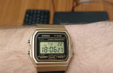 Электронные часы в чёрно-золотом исполнении напоминают первые модели от Casio благодаря винтажному 8-угольному ударопрочному корпусуУдаропрочный корпусМеханизм заключён в корпус, выполненный из современных материалов, устойчивых к ударам, механическим повреждениям и падению с высоты: инновационный пластик, карбон, нержавеющая сталь, титан., сделанному из надёжного пластика. Аксессуар с кварцевым механизмом работает от батарейки, характеризующейся высоким сроком службы - до 7 лет. Циферблат оснащён светодиодной микроподсветкойСветодиодная подсветкаСветодиодная или LED-подсветка обеспечивает появление яркого холодного свечения за счёт LED-элементов - маленьких лампочек. Они потребляют минимальное количество энергии, чаще всего можно встретить 1 светодиод, в нижней части циферблата., освещающей его сбоку. Органическое стекло легко полируется. Гибкий полимерный ремешок. Ежедневный будильник, секундомер, автоматический календарь, 12 и 24-х часовое отображение времени. Габариты: 33,2 x 38 x 8,5 мм.