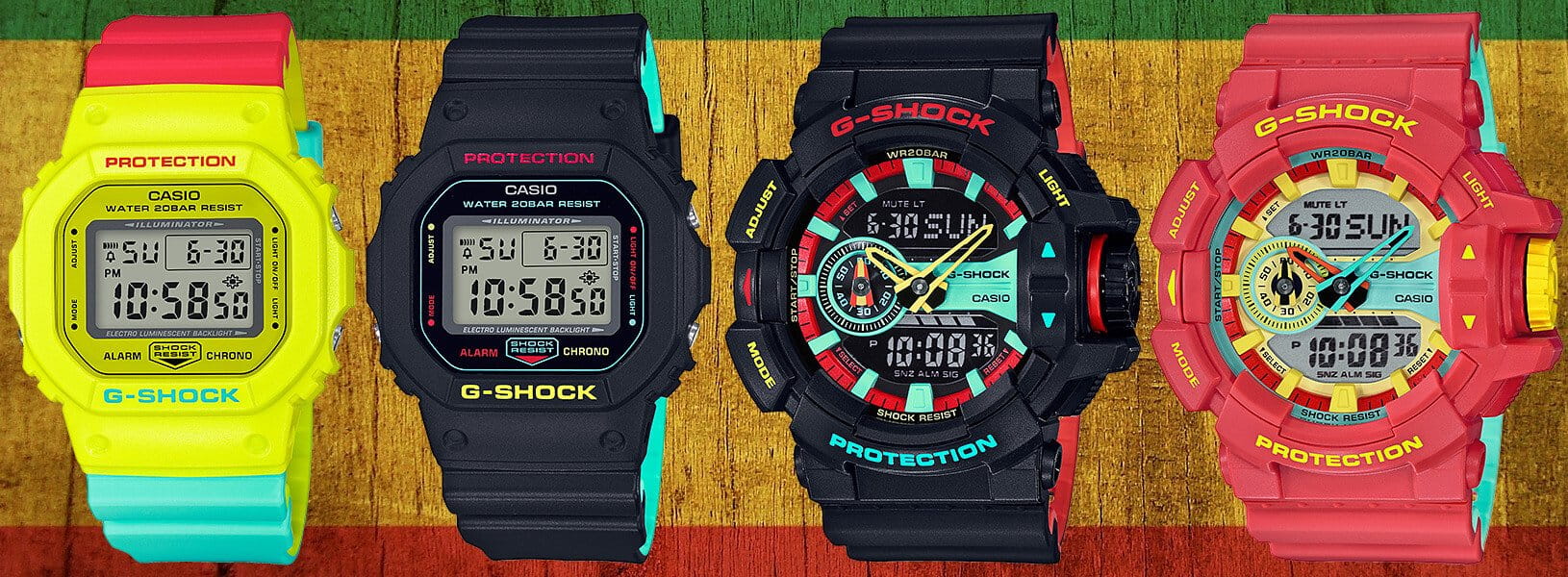 Соскучились по ярким и разноцветным G-Shock-ам? В июне этого года японцы показали две новых серии — DW-5600CMA и GA-400CM, которые своей стилистикой и цветовой гаммой напоминают об одной известной молодежной субкультуре, а именно регги и ее последователях растаманах.