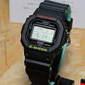Перед вами модель в олдскульной серии G-SHOCK DW-5600.Черный корпус часов украшают яркие цветные маркировки, а двухслойный ремешок: черный снаружи и ярко-голубой внутри, придает часам дополнительной оригинальности.