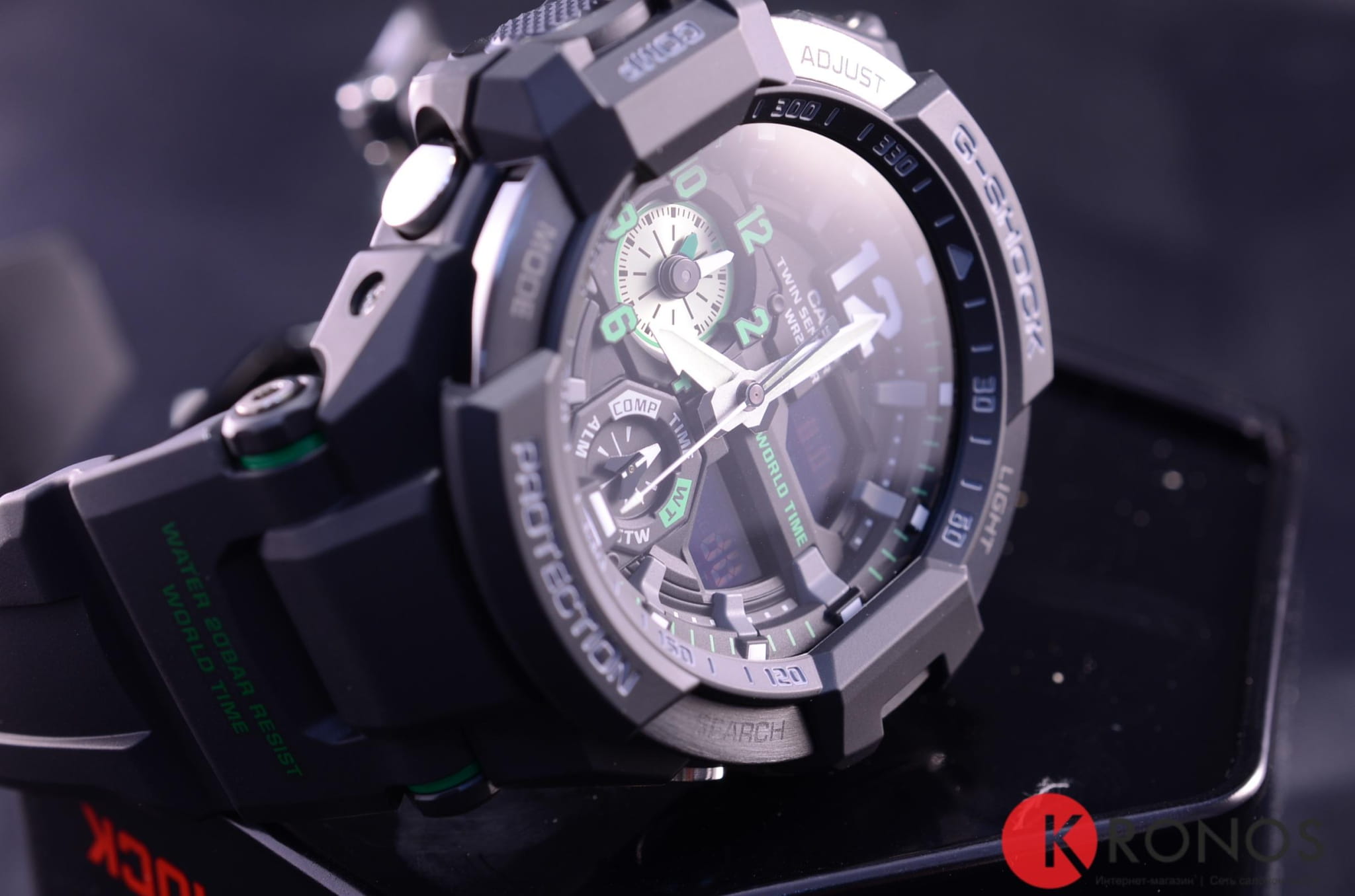 Ударопрочная конструкция защищает от ударов и вибрации. Светящееся покрытие обеспечивает длительную подсветку в темное время суток после короткого воздействия света. Встроенный цифровой компас определяет северный магнитный полюс. Датчик измеряет температуру окружающего воздуха вокруг часов и отображает ее на экране в градусах °C (-10°C /+60°C). Отображение текущего времени в основных городах и конкретных областях по всему миру. Функция секундомера - 1/100 сек. - 1 час. Для поклонников точности: таймеры обратного отсчета напомнят Вам о текущих или особенных событиях, издав звуковой сигнал в установленное время. Время можно предварительно настроить от 1 минуты и до 1 часа. Нажатие на кнопку обеспечит перемещение стрелок в такое положение, которое позволит Вам легко считать информацию с маленьких цифровых дисплеев – например, дату или показатели секундомера. Можно отключить звук при нажатии кнопок. Автоматический календарь. Прочное, устойчивое к царапинам минеральное стекло защищает часы от повреждений. Корпус из нержавеющей стали и полимерного пластика. Ремешок из полимерного материала. Водонепроницаемость (20 Бар). Идеально подходит для ныряния без акваланга.
