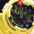 Casio GA-110NM-9A яркие современные часы в ударопрочном корпусе. Минеральное стекло, устойчивое к появлению царапин. Корпус и браслет часов выполнены из полимерного пластика яркого, гламурного желтого цвета. Часы GA-110NM-9A снабжены множеством дополнительных функций - секундомер, таймер обратного отсчета, календарь, термометр, компас, сверхмощная автоматическая LED-подсветка с автоматической регулируемой автоматизацией. Ежечасный сигнал, повтор сигнала будильника, мировое время. Водонепроницаемость часов до 200 метров. Магнитоустойчивые.  Элемент питания CR1220, точность хода +\- 15 сек.в месяц.
