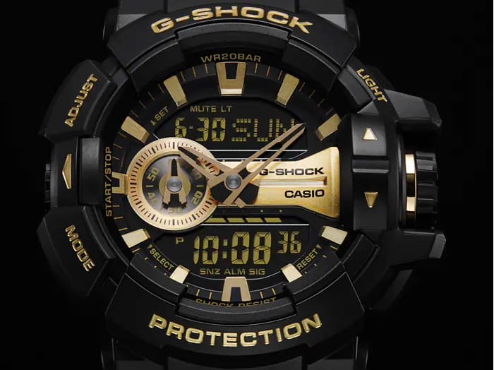 Функция мирового времени. Отображение времени в 12-часовом или 24-часовом формате. Особая ударопрочная конструкция защищает от ударов и вибрации. Минеральное стекло устойчивое к возникновению царапин. Ремешок из полимерного материала. Натуральный полимерный материал является идеальным для изготовления ремешка благодаря своей чрезвычайной прочности и гибкости. Корпус выполнен из высококачественного пластика с алюминиевым безелем. Задняя крышка стальная.