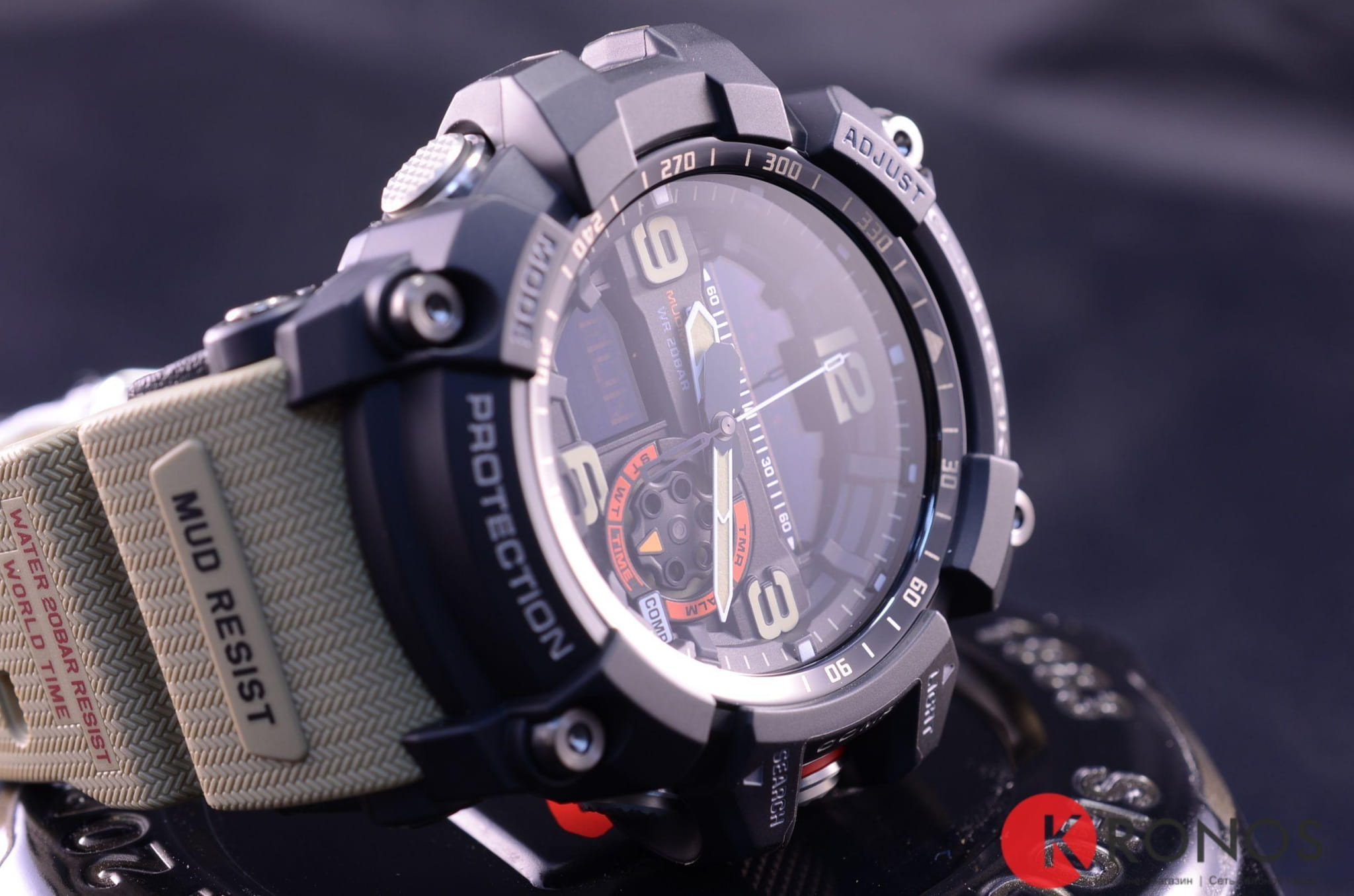 Японские мужские часы-хронографХронографФункция позволяет измерять отрезки времени с особой точностью: часы, минуты, секунды. Верным признаком хронографа является наличие на циферблате 3 дополнительных окошек-счётчиков. Casio G-Shock GG-1000-1A5 из коллекции G-Shock. При создании этой модели были учтены экстремальные ситуации, с которыми сталкиваются владельцы часов в суровых условиях пустыни. Mudmaster. Индикатор низкого заряда батареи. Минеральное стеклоМинеральное стеклоМинеральное стекло представляет собой искусственно выращенный минерал кварца. Такое стекло отличается особой устойчивостью к повреждениям и царапинам. Уступает по некоторым качествам сапфировому стеклу. устойчивое к появлению царапин, обладающее высокой прозрачностью. Ударопрочный корпусУдаропрочный корпусМеханизм заключён в корпус, выполненный из современных материалов, устойчивых к ударам, механическим повреждениям и падению с высоты: инновационный пластик, карбон, нержавеющая сталь, титан. защищает механизм от ударов и вибрации. Светодиодная подсветкаСветодиодная подсветкаСветодиодная или LED-подсветка обеспечивает появление яркого холодного свечения за счёт LED-элементов - маленьких лампочек. Они потребляют минимальное количество энергии, чаще всего можно встретить 1 светодиод, в нижней части циферблата. освещает весь циферблат. Мировое времяМировое время Полезное часовое усложнение, отображающее время в основных городах и известных областях по всему миру, оно связано с часовыми поясами, удобно для путешественников и бизнесменов. – 48 городов (29 часовых поясов). СекундомерСекундомерСекундоме́р — прибор, способный измерять интервалы времени с точностью до долей секунды. с точностью измерения 1/100 секунды и измерением до 23 часов 59 минут 59,99 cек. ТаймерТаймерОтсчитывает секунды в обратном направлении в заданном интервале времени. обратного отсчета (диапазон времени 24 часа), автоматический календарь, 12/24 отображение времени. 5 будильникаБудильникБуди́льник — часы, в заданный момент времени подающие звуковой, световой и/или в редких случаях другой сигнал., один с функцией Snooze, ежечасный сигнал. Встроенный цифровой компас. Диапазон измерения от 0° до 359° с точностью 1°. Коррекция магнитного склонения. Встроенный датчик температуры от -10° до +60°С с точностью 0,1°C. Класс водозащиты: 200 метров, позволит плавать, нырять и заниматься другими водными видами спорта. Ремешок из полимерного материала на стандартной застежке.