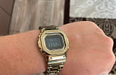 Премиальные наручные часы золотистой расцветки, напоминающие ретро-модели от Casio, имеют противоударный корпусУдаропрочный корпусМеханизм заключён в корпус, выполненный из современных материалов, устойчивых к ударам, механическим повреждениям и падению с высоты: инновационный пластик, карбон, нержавеющая сталь, титан., благодаря безупречной полировке он выглядит хромированным. Безель имеет естественную стальную структуру. Слой материала Alpha Gel® обеспечивает дополнительную устойчивость к ударам и повреждениям, завинчивающаяся задняя крышка имеет защитное DLC-покрытиеDLC-покрытиеDiamond like carbon - одно из лучших видов покрытия, представляющее собой углерод с алмазными свойствами. На поверхность материала наносятся распавшиеся молекулы углерода, превращающиеся в плёнку из алмазоподобных связей, которая перенимает твёрдость алмаза.. Модель оснащена богатым функционалом: BluetoothBluetoothСовременная технология, позволяющая синхронизировать часы с телефоном и переносить данные. Часы с Bluetooth расширяют возможности вашего смартфона и делают его использование ещё более удобным., таймер, функция поиска телефона, UTCUTCВсемирное кординационное время, не имеющее привязки к географическому положению Гринвича, основывается на атомном отсчёте времени. Регулировка времени осуществляется более точно, чем устаревшее GMT.