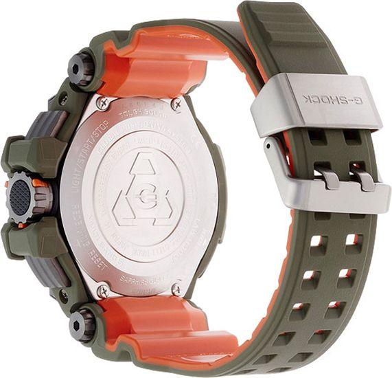 Перед вами модель из флагманской серии G-SHOCK GPW в милитаристическом дизайне цвета хаки, черным стальным безелем и яркими оранжевыми деталями — это первые в мире часы с GPS- и радио-синхронизацией времени с атомными часами в разных частях света.