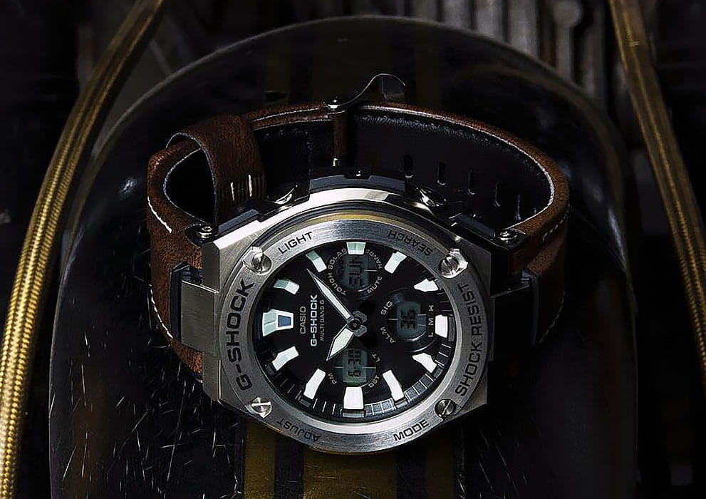 Японские мужские часы GST-W130L-1AER из коллекции G-Shock отличаются оригинальным исполнением, позаимствованным у классических механических моделей.
