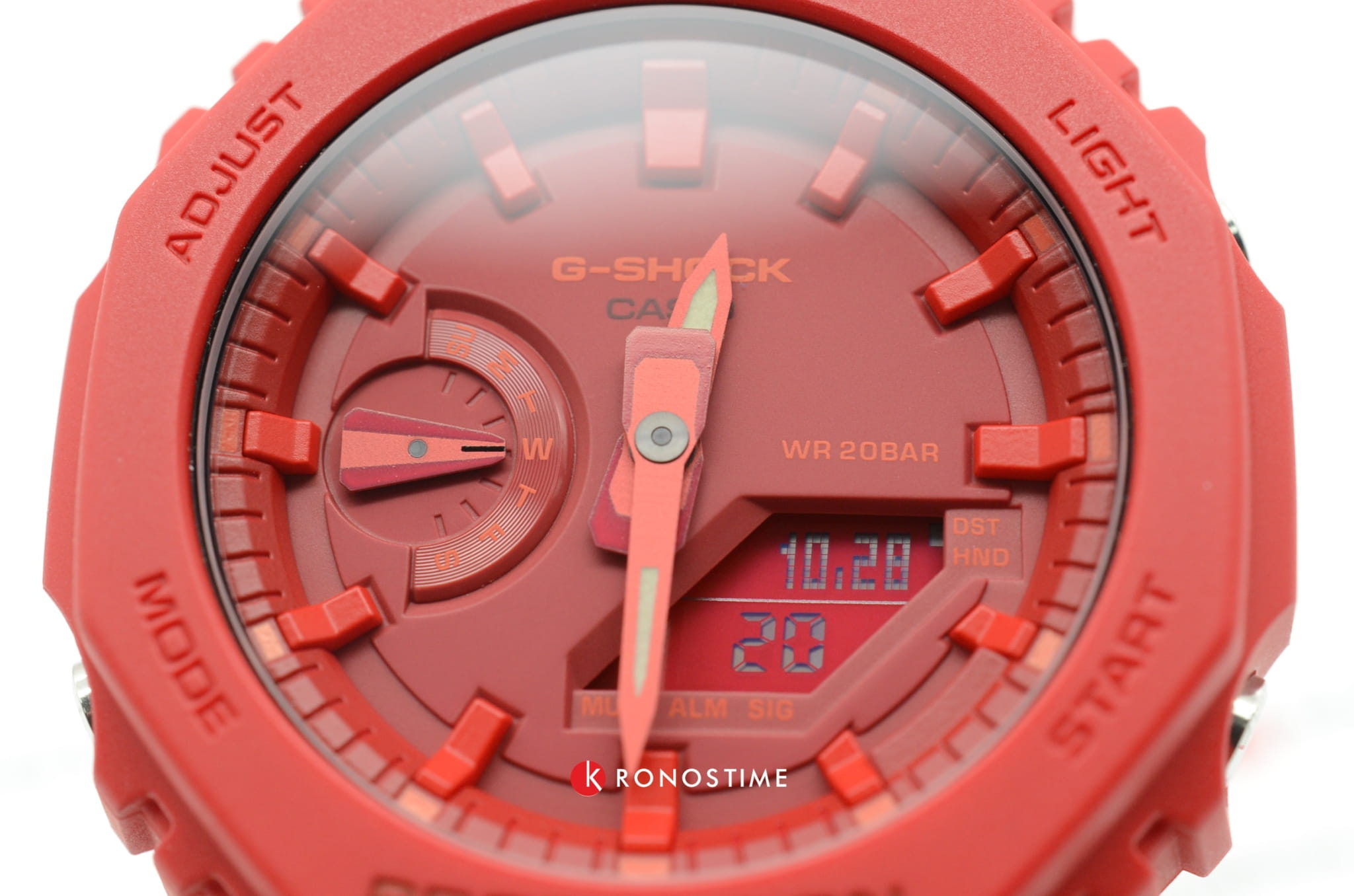 Оригинальный безельБезельВнешний ободок, закрепляющий стекло. В спортивных часах так называется поворотное кольцо с делениями на циферблате, выполняет роль таймера – замеряет отрезки времени на шкале. Неподвижный безель – элемент декора. Однонаправленно вращающийся безель на дайверских часах позволяет фиксировать моменты погружения и выныривания на поверхность. имеет форму октагона, часы являются современной интерпретацией модели DW-5000C. Аксессуар выполнен в ярко-красном цвете. Ударопрочный корпусУдаропрочный корпусМеханизм заключён в корпус, выполненный из современных материалов, устойчивых к ударам, механическим повреждениям и падению с высоты: инновационный пластик, карбон, нержавеющая сталь, титан. характеризуется повышенной устойчивостью к ударам и повреждениям за счёт технологии Carbon Core GuardCarbon Core Guard Новейшая структура корпуса, разработанная Casio. Полиуретановая пластина дополнительно усилена карбоновыми вставками, что придаёт специальную защиту от механических повреждений. Карбон отличается лёгкостью и прочностью.. Ремешок из полимерного материала с обновлённым креплением. Функция складывания стрелок для чтения показателей с дисплеев. Мировое времяМировое время Полезное часовое усложнение, отображающее время в основных городах и известных областях по всему миру, оно связано с часовыми поясами, удобно для путешественников и бизнесменов. , секундомер, 5 будильников, автоматический календарь. Срок службы батарейки - 3 года. Габариты: 48,5 x 45,4 x 11,8 мм.
