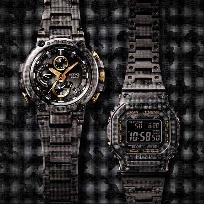 Для наручных часов в необычном «военном» исполнении была использована особая лазерная технология точечного нанесения рисунка. Легендарный 8-угольный ударопрочный корпусУдаропрочный корпусМеханизм заключён в корпус, выполненный из современных материалов, устойчивых к ударам, механическим повреждениям и падению с высоты: инновационный пластик, карбон, нержавеющая сталь, титан. и браслет сделаны из титана, материал отличается устойчивостью к магнитным полям и перепадам температуры, не вызывает аллергии даже на чувствительной коже. Поверхность имеет DLC-покрытиеDLC-покрытиеDiamond like carbon - одно из лучших видов покрытия, представляющее собой углерод с алмазными свойствами. На поверхность материала наносятся распавшиеся молекулы углерода, превращающиеся в плёнку из алмазоподобных связей, которая перенимает твёрдость алмаза., защищающее от царапин и повреждений. Для полной ударопрочности конструкции дополнительно применили слой материала Alpha Gel®. Технология , индикатор состояния заряда батареи. Сапфировое стекло с антибликовым покрытием. Светодиодная подсветкаСветодиодная подсветкаСветодиодная или LED-подсветка обеспечивает появление яркого холодного свечения за счёт LED-элементов - маленьких лампочек. Они потребляют минимальное количество энергии, чаще всего можно встретить 1 светодиод, в нижней части циферблата.. Сохранение водонепроницаемости при давлении до 20 бар. Bluetooth-синхронизация со смартфономBluetoothСовременная технология, позволяющая синхронизировать часы с телефоном и переносить данные. Часы с Bluetooth расширяют возможности вашего смартфона и делают его использование ещё более удобным., функция поиска телефона. Секундомер, таймер, автоматический календарь, мировое времяМировое время Полезное часовое усложнение, отображающее время в основных городах и известных областях по всему миру, оно связано с часовыми поясами, удобно для путешественников и бизнесменов. . Габариты: 43,2 x 49,3 x 13 мм.