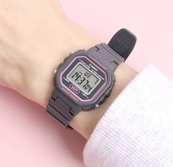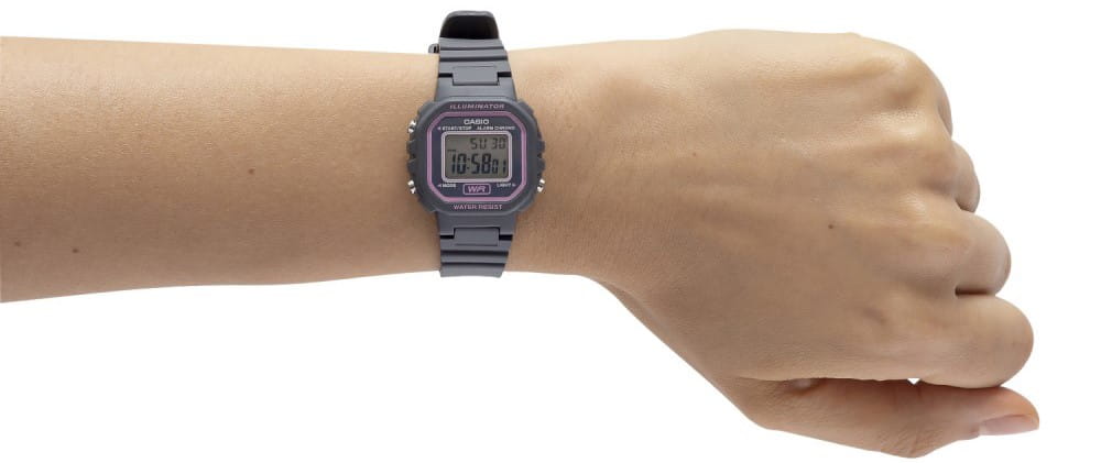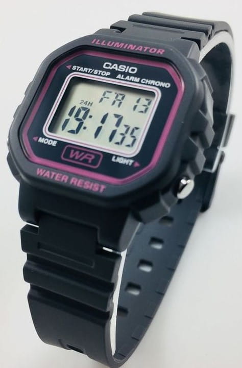 Японские женские спортивные часы с будильникомБудильникБуди́льник — часы, в заданный момент времени подающие звуковой, световой и/или в редких случаях другой сигнал. Casio Collection LA-20WH-8AEF, кварцевый механизм с высокой точностью. Класс водозащиты: 30 метров, позволит защитить корпус от случайных брызг или капель дождя. Корпус часов изготовлен из пластика. Пластиковый ремешок на стандартной застёжке. Светодиодная подсветкаСветодиодная подсветкаСветодиодная или LED-подсветка обеспечивает появление яркого холодного свечения за счёт LED-элементов - маленьких лампочек. Они потребляют минимальное количество энергии, чаще всего можно встретить 1 светодиод, в нижней части циферблата. освещает весь циферблат. Вечный календарьВечный календарьКлассическое часовое усложнение, представляющее собой календарь, рассчитанный на несколько лет вперёд (стандартно – до 2099 года). Определяет текущую дату, день недели, месяц.. 24-х часовой режим индикации времени. Ежечасный сигнал - в конце каждого часа звучит звуковой сигнал.