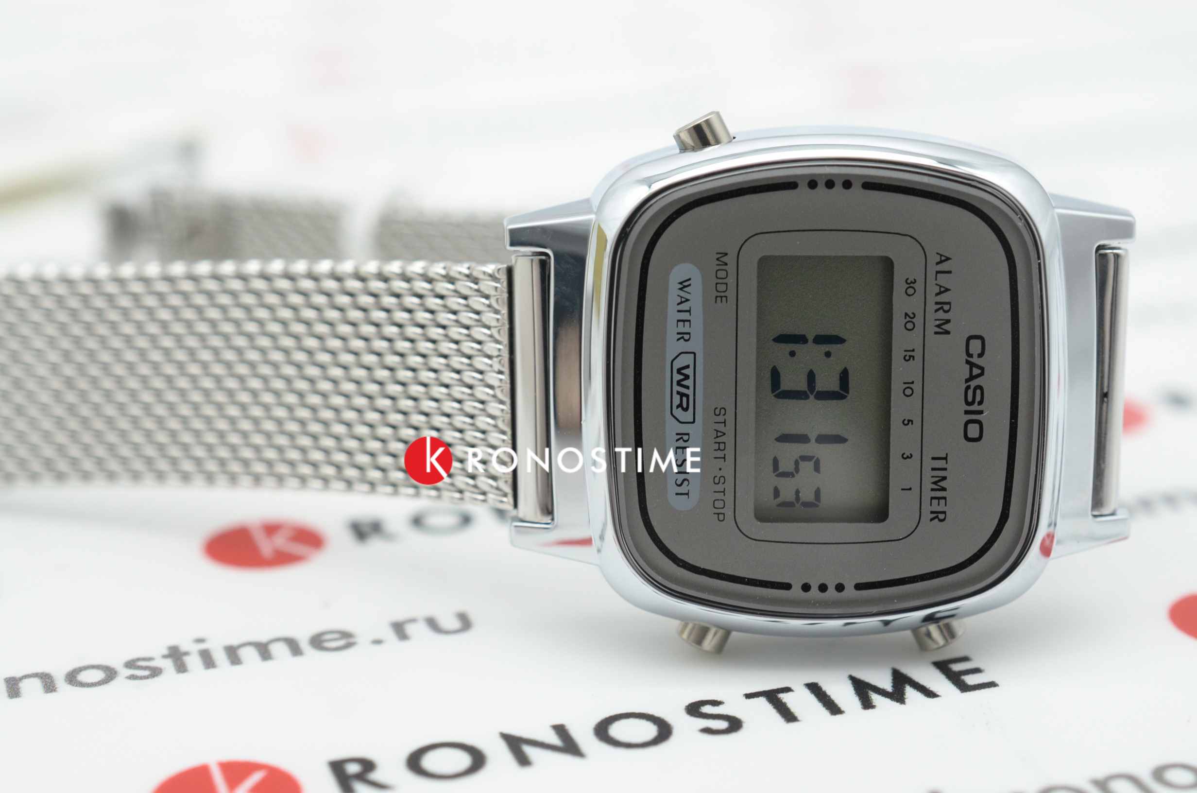 Спортивные женские наручные часы с электронным циферблатом. Оснащены функциями: секундомера, таймера, календаря и подсветки. Корпус - Нержавеющая сталь, PVD покрытие; Стекло - Пластик; Водозащита - 30 м. (WR 30); Материал ремешка - Нержавеющая сталь,покрытие; Цвет ремешка -Серый; Цвет циферблата - Lcd.