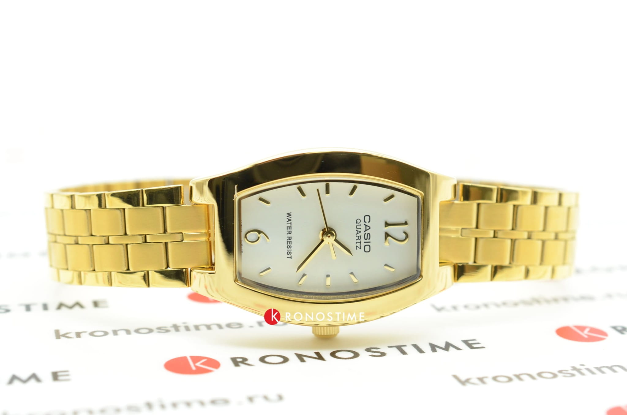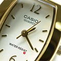 Модель от Casio выполнена в классическом стиле и призвана придавать эффектности и шарма своей обладательнице. Выпуклый по бокам корпус часов сделан из латуни. Яркий, золотой браслет с раскладывающейся застежкой сделан из нержавеющей стали с IP-покрытиемIP-покрытиеМетод ионного напыления. Демонстрирует повышенную устойчивость к истиранию, окислению и химическим веществам. Под воздействием высокого давления и температуры около 1500°C молекулы металла надёжно соединяются с частицами корпуса часов.. На белом циферблате аккуратно расположены штрихи и арабские цифры. Часы защищены от повреждений минеральным стеклом. Все детали прочно соединены между собой в единое целое. Кварцевые часы работают от батарейки. Вес аксессуара равен 48 граммам.