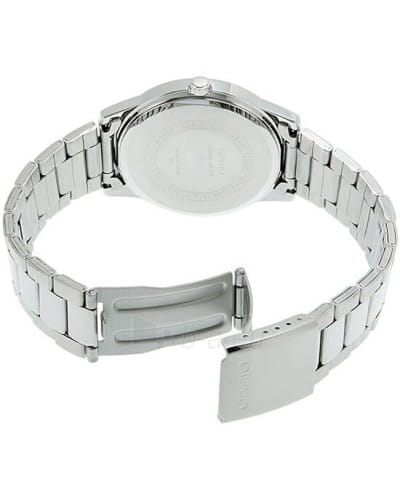 Японские мужские часы с минеральным стекломМинеральное стеклоМинеральное стекло представляет собой искусственно выращенный минерал кварца. Такое стекло отличается особой устойчивостью к повреждениям и царапинам. Уступает по некоторым качествам сапфировому стеклу. Casio Collection MTP-1303PD-1A из коллекции Casio MTP представляет собой максимально комфортный и стильный аксессуар на все случаи жизни. Кварцевый механизм с высокой точностью. Наручные часы от Casio выдержаны в повседневном стиле. Стильный и практичный дизайн завоюет сердца тех, кто предпочитает привлекательность и удобство. Прочный корпус выполнен из гипоаллергенной латуни. На циферблате традиционной формы расположены четкие временные отметки и изящные стрелки. Подсветка NeobriteПодсветка NeobriteИспользование светонакопительных составов на основе сульфида цинка или алюмината стронция, яркий свет можно наблюдать на протяжении 6-10 часов после «зарядки» часов около источника света. обеспечивает длительное послесвечение в темноте даже после кратковременного нахождения на свету. Класс водозащиты: 50 метров, позволит защитить корпус от случайных брызг или капель дождя. Стальной браслет на раскладной застёжкеРаскладная застёжкаТакой тип застёжки используется только на браслетах из металла. Она никогда не раскрывается полностью, происходит разделение на 2 и более частей. Раскладывающая застёжка снизит вероятность потери часов к минимуму..